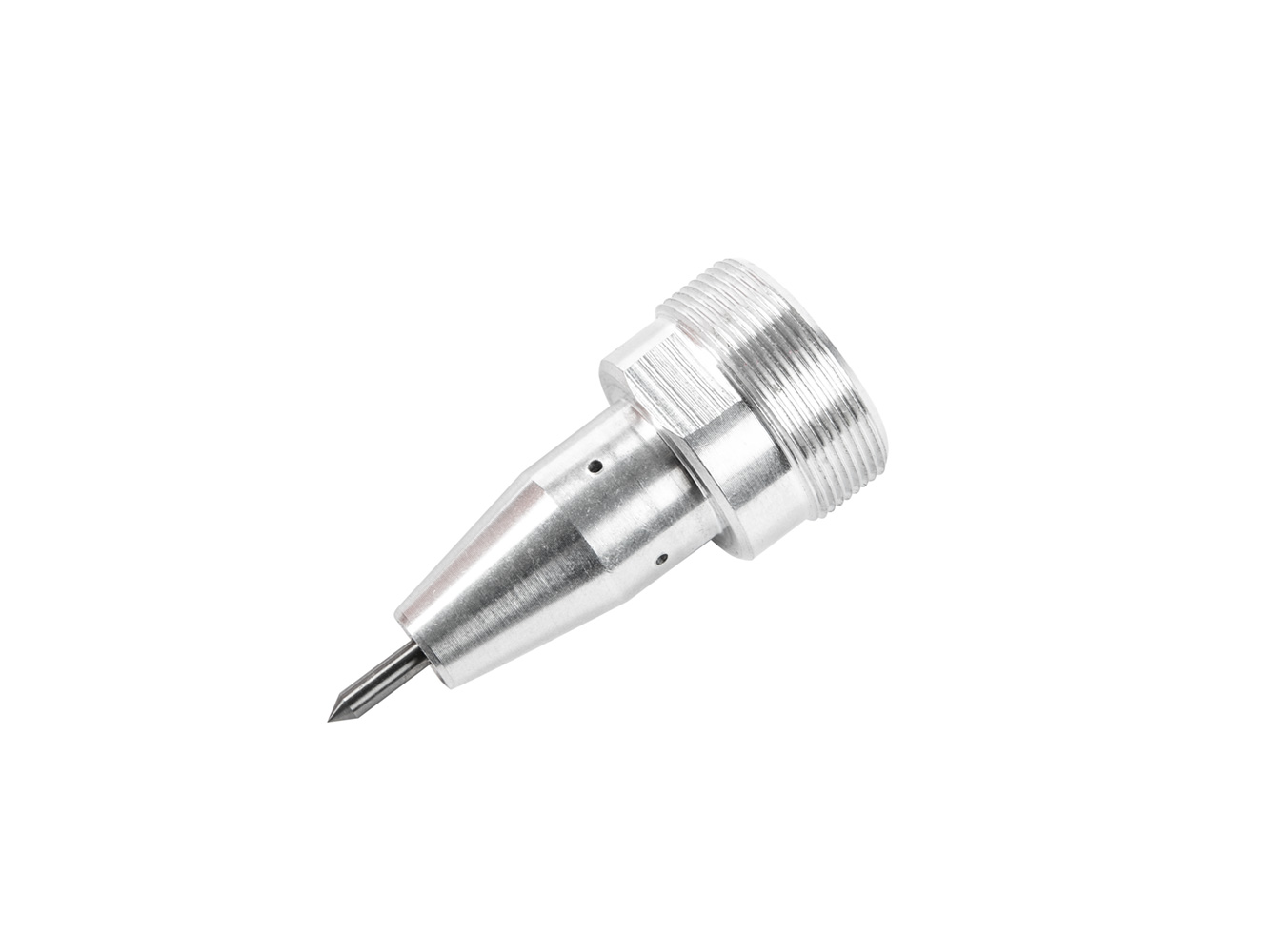 Wymienna końcówka mikropuncha do przenośnego pneumatycznego systemu mikropuncha SL-325. Końcówka z węglików spiekanych o średnicy 2 mm jest zamontowana w aluminiowym korpusie ze zintegrowanym pneumatycznym mechanizmem udarowym, korpus końcówki jest kontynuacja tekstu