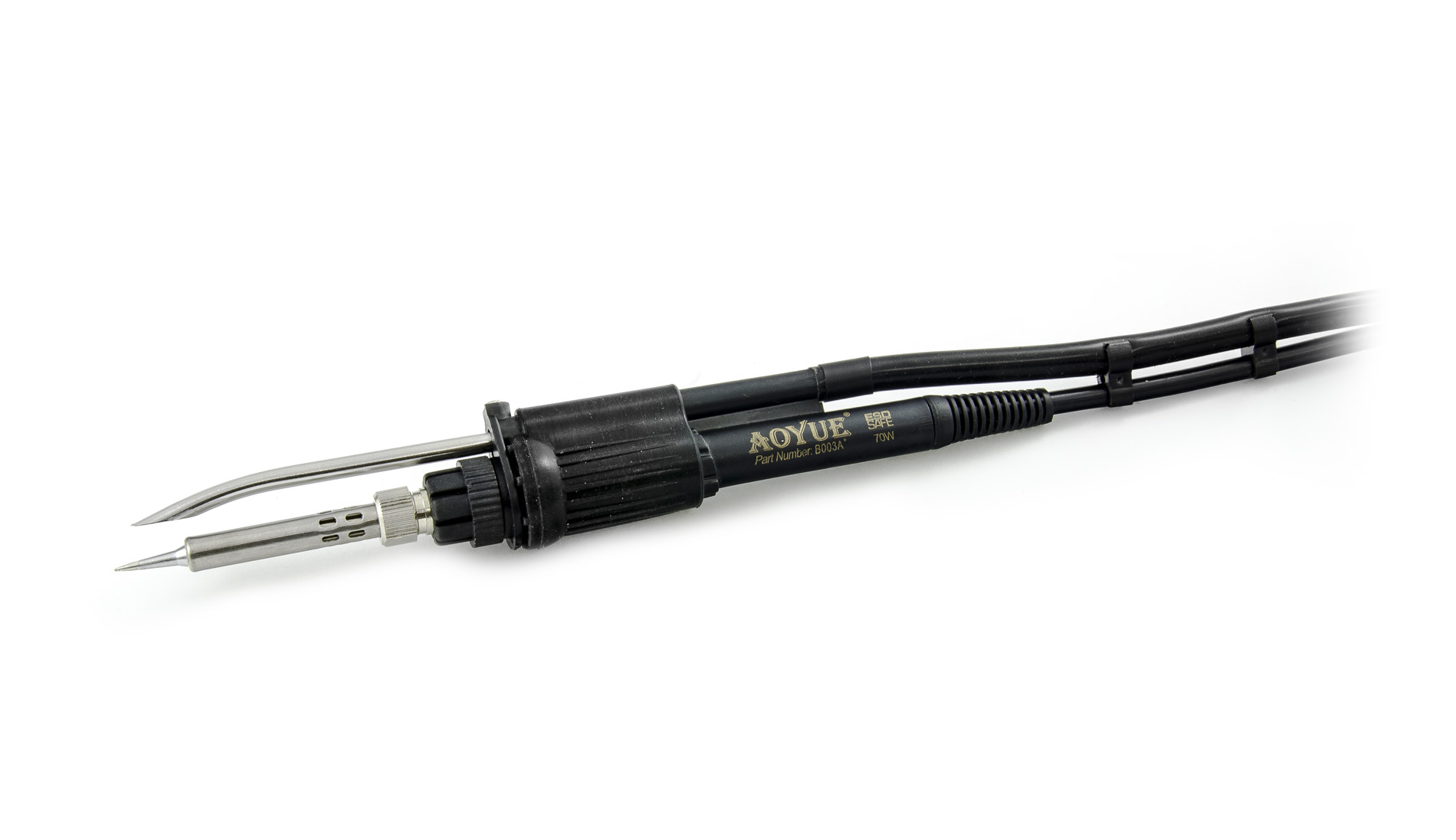 Mikrolutownica oferuje dużą moc 70 W z cyfrowo kontrolowaną temperaturą w zakresie 200-480°C i jest sterowana całkowicie niezależnie od rozlutownicy. Pióro lutownicze zawiera zintegrowany wyciąg oparów, który łączy się ze złączem ssącym stacji. Stacja jest zakończona pojedynczym złączem ssącym i aby użyć pochłaniacza dymu, rozlutownica musi być odłączona od pompy. Mikrolutownica oferuje również funkcję automatycznego usypiania, która wydłuża żywotność końcówki i oszczędza energię.
