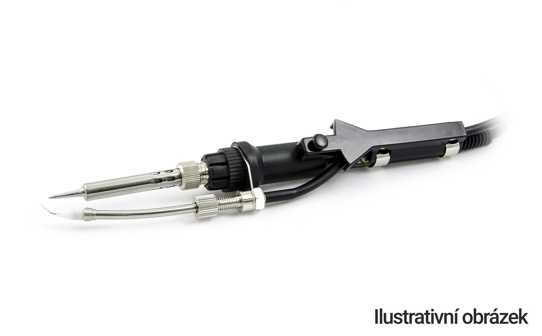 Przycisk sterujący łączy się z gniazdem pedału za pomocą złącza Jack 3,5 mm. Przystawkę montuje się bezpośrednio na korpusie pióra lutowniczego, gdzie dzięki swojemu kształtowi idealnie pasuje. Mocuje się ją do korpusu mikrolutownicy za pomocą dwóch metalowych pierścieni mocujących. Końcówka bowdena jest wykonana z odpornego na ciepło teflonu, więc nie ma ryzyka stopienia z powodu ciepła otoczenia. Bowden zasilający ma 80 cm długości.