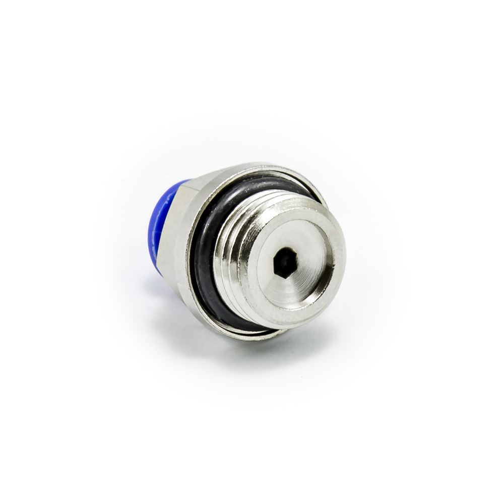 Wkręcana złączka prosta John Guest z gwintem zewnętrznym 1/4". Przeznaczona do węży o średnicy zewnętrznej 4 mm. Węża nie można przepchnąć, wewnątrz złączki znajduje się otwór na klucz imbusowy. Gwinty są zakończone gumowymi uszczelkami.