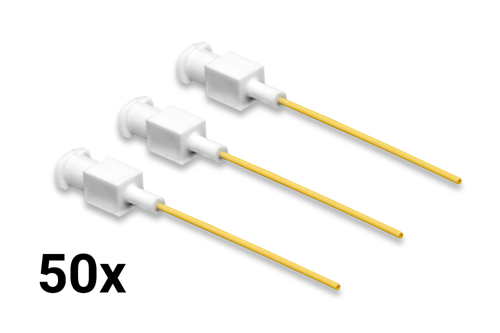 Igły dozujące do zastosowań zrobotyzowanych i ręcznych z rurką PP. Doskonała elastyczność rurek dozujących sprawia, że te igły dozujące nadają się do dozowania w małych przestrzeniach lub przez otwory, gdzie istnieje ryzyko niezamierzonego kontaktu z krawędzią materiału, a następnie złamania lub zgięcia igły, lub ryzyko uszkodzenia przedmiotu obrabianego przez niezamierzony kontakt z końcówką igły.