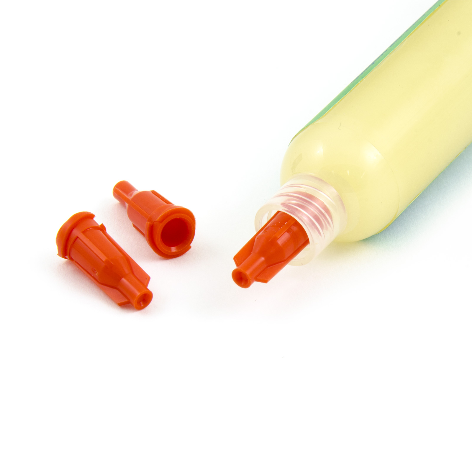 Nasadka jest przeznaczona do hermetycznego uszczelniania ujścia (końcówki) strzykawek i kartridży z gwintem Luer lock, może być również używana na strzykawkach Luer slip. Zatyczka do kartridży i strzykawek jest dostępna w kilku kolorach: białym, pomarańczowym i czarnym. Zatyczka jest wykonana z polipropylenu i nie zawiera silikonu. Nadaje się do użytku z materiałami UV.