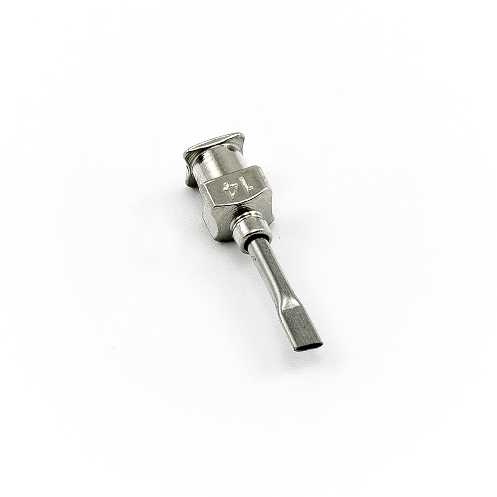 Igła nie jest w żaden sposób przyklejona, nie zawiera żadnych klejów ani silikonów. W rezultacie ta igła dozująca ze stali nierdzewnej może być używana na przykład do dozowania klejów przemysłowych, uszczelniaczy, epoksydów, uszczelniaczy, smarów, utwardzaczy UV, past lutowniczych, farb lub topników lutowniczych. Odpowiedni do maksymalnego ciśnienia 6,8 bara.