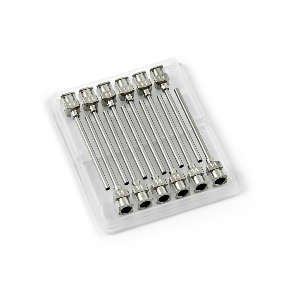 Tępe, całkowicie metalowe igły aplikacyjne z kaniulą o długości 38,1 mm (1,5") do dokładnego dozowania cieczy o średniej i dużej lepkości. Idealna końcówka dozująca do aplikacji zrobotyzowanych pod ciśnieniem do 6,8 bara. Korpus igły i piasta wykonane są ze stali nierdzewnej, a kapilara z nierdzewnej stali rafinowanej. Podczas produkcji kładzie się nacisk na jakość powierzchni i precyzyjne przyleganie do wewnętrznej średnicy igły, dlatego powierzchnia kapilary jest elektropolerowana.