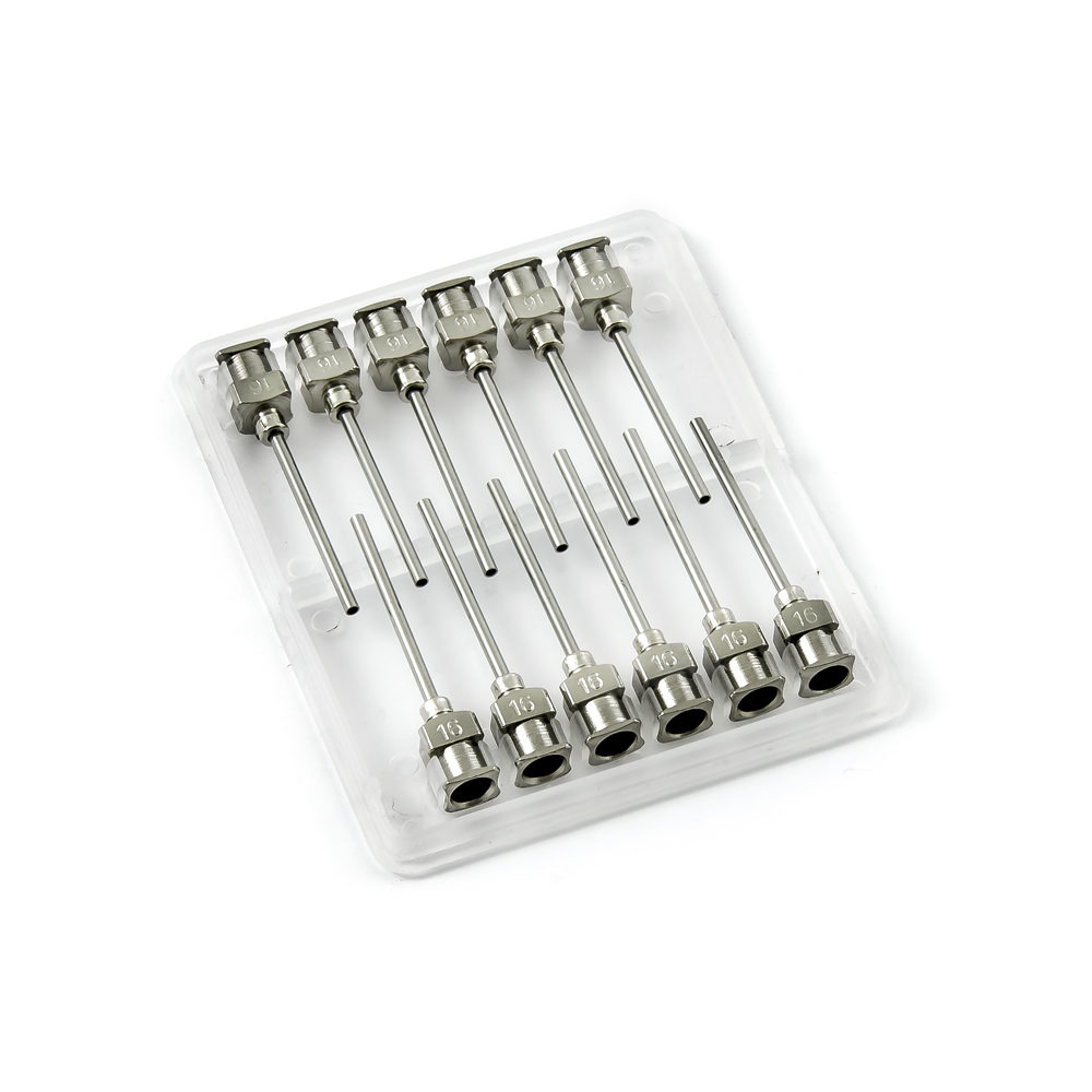 Tępe, całkowicie metalowe igły aplikacyjne z kaniulą o długości 25,4 mm (1") do dokładnego dozowania cieczy o średniej i dużej lepkości. Idealna końcówka dozująca do aplikacji zrobotyzowanych pod ciśnieniem do 6,8 bara. Korpus igły i piasta wykonane są ze stali nierdzewnej, a kapilara z nierdzewnej stali rafinowanej. Podczas produkcji kładzie się nacisk na jakość powierzchni i precyzyjne przyleganie do wewnętrznej średnicy igły, dlatego powierzchnia kapilary jest elektropolerowana.