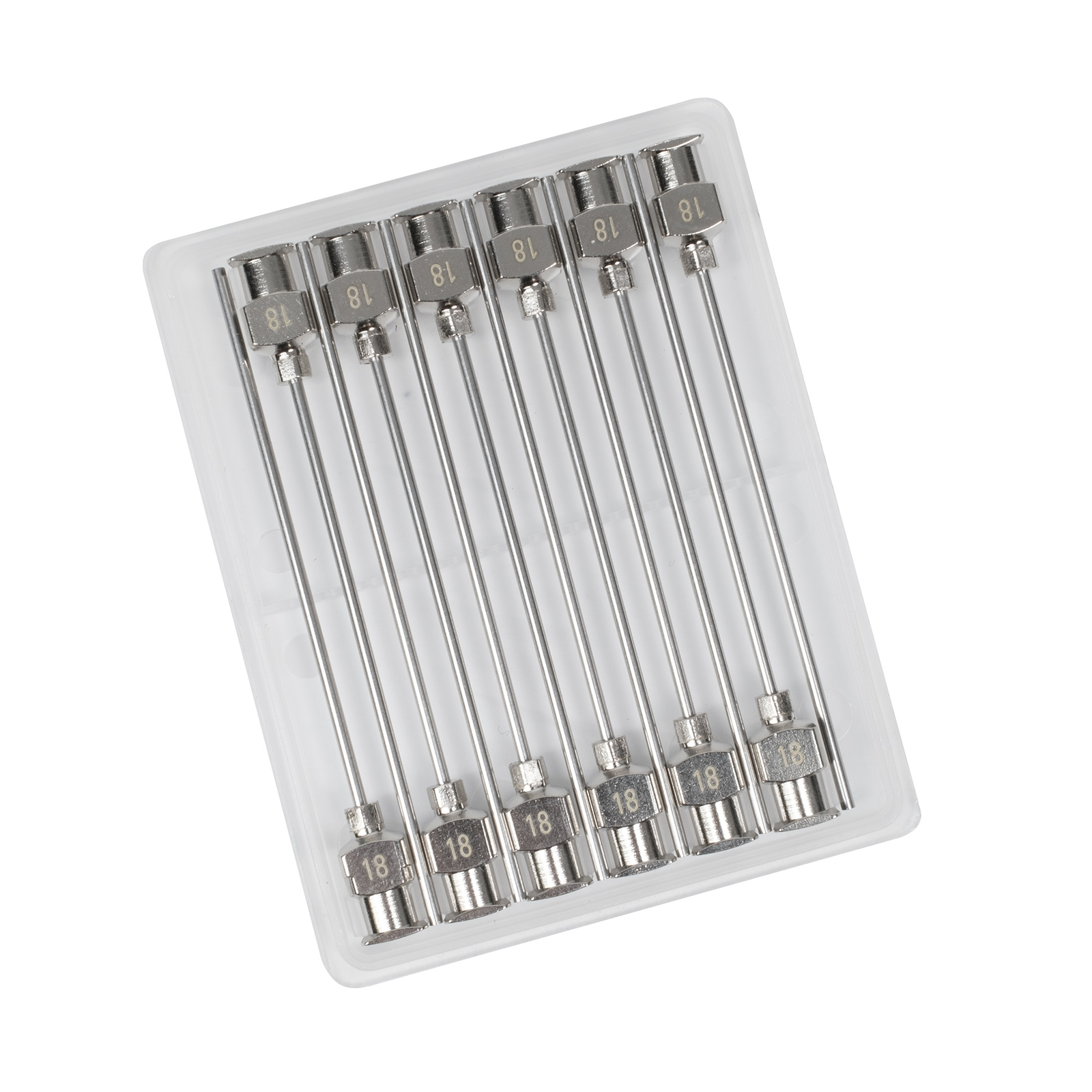 Tępe, całkowicie metalowe igły aplikacyjne z kaniulą o długości 50,8 mm (2") do dokładnego dozowania cieczy o średniej i dużej lepkości.
