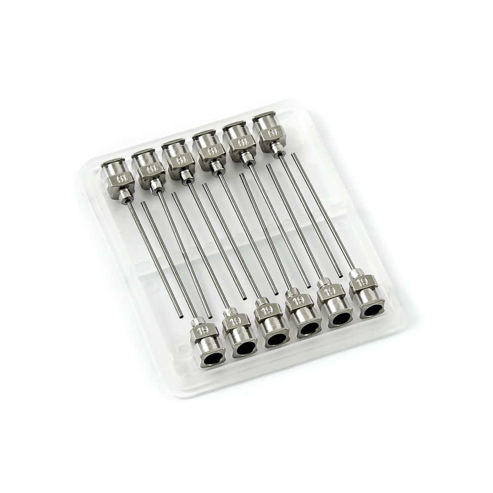 Tępe, całkowicie metalowe igły aplikacyjne z kaniulą o długości 38,1 mm (1,5") do dokładnego dozowania cieczy o średniej i dużej lepkości. Idealna końcówka dozująca do aplikacji zrobotyzowanych pod ciśnieniem do 6,8 bara. Korpus igły i piasta wykonane są ze stali nierdzewnej, a kapilara z nierdzewnej stali rafinowanej. Podczas produkcji kładzie się nacisk na jakość powierzchni i precyzyjne przyleganie do wewnętrznej średnicy igły, dlatego powierzchnia kapilary jest elektropolerowana.