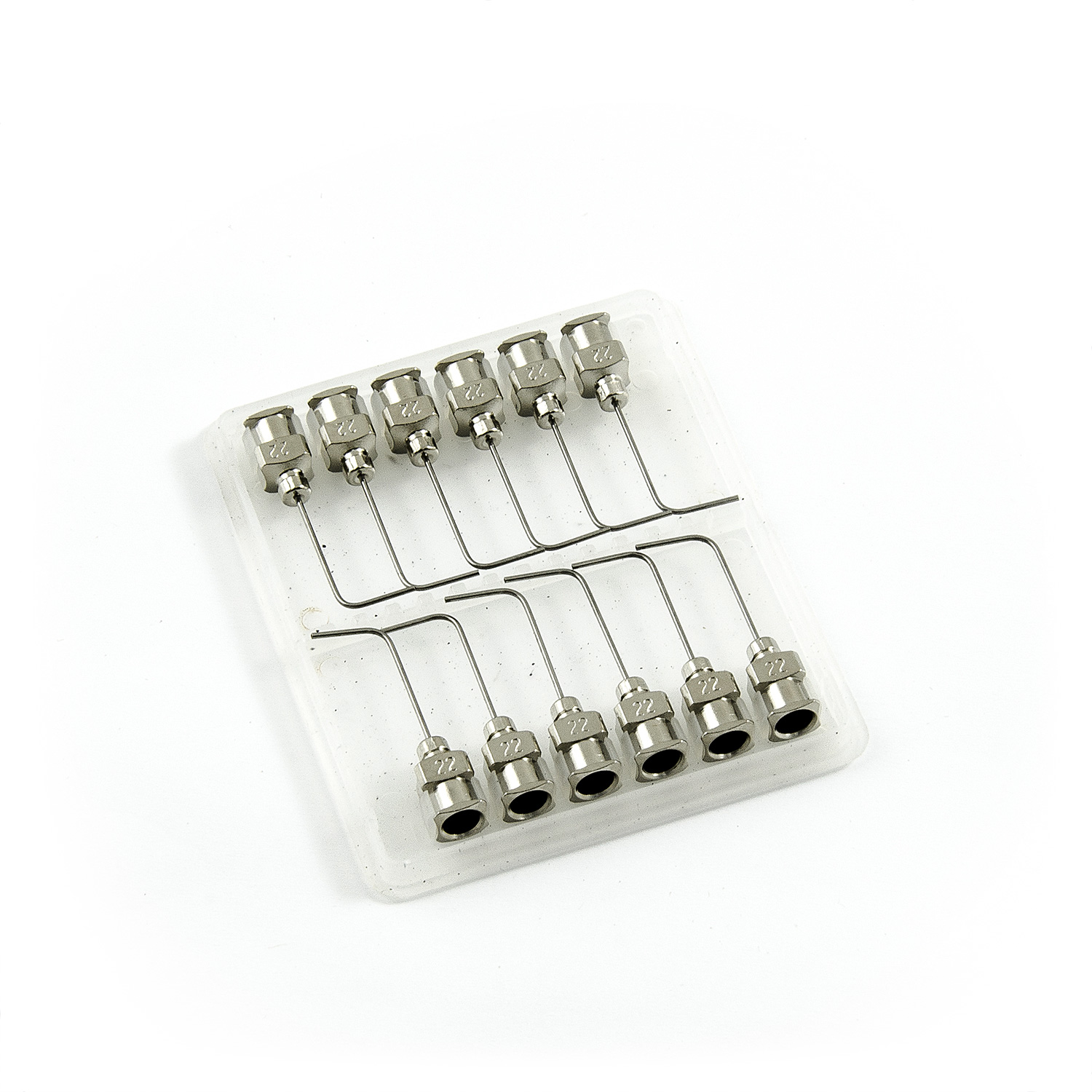 Zakrzywiona igła dozująca jest wykonana w całości z metalu - stali nierdzewnej - a jej koniec jest wygięty pod
