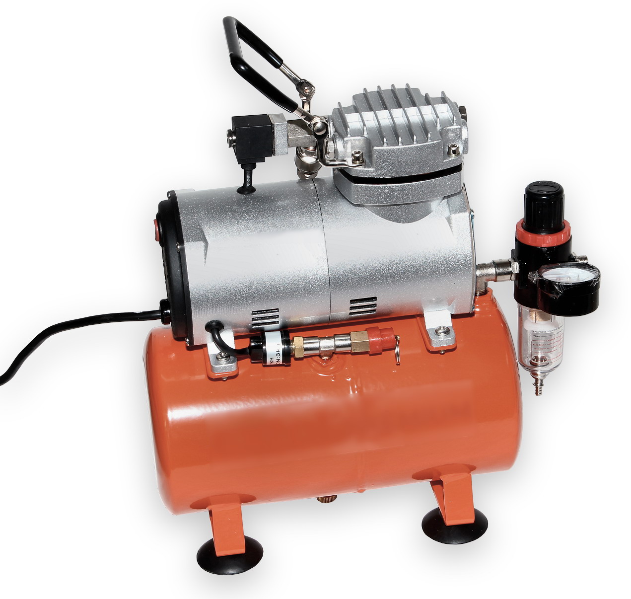 Mikro dziurkacz jest wyposażony w system zarządzania powietrzem ze zbiornikiem oleju i regulacją ciśnienia powietrza. Wejście do szybkozłącza kierownika powietrza dla węża 8 mm, wyjście szybkozłącza dla węża 6 mm.