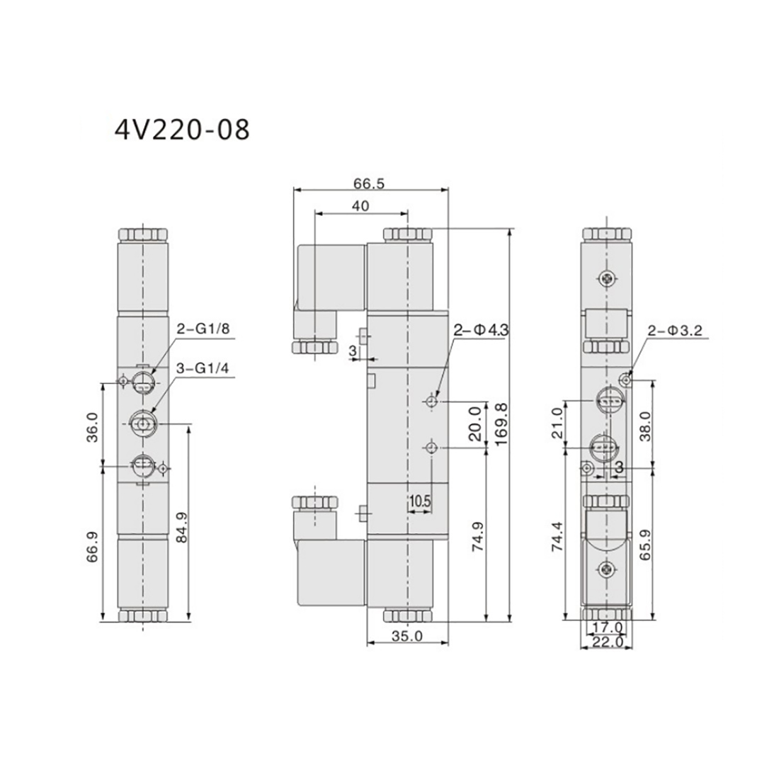 Wszystkie wejścia i wyjścia mają końcówkę z gwintem wewnętrznym G 1/8".