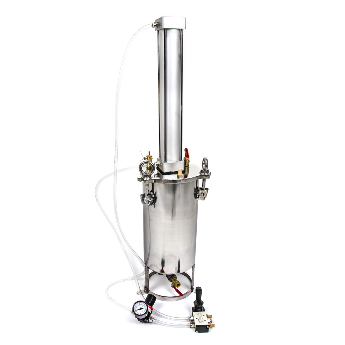Wysokiej jakości zbiornik ciśnieniowy ze stali nierdzewnej o całkowitej pojemności 5 litrów z pneumatycznym tłokiem, zaworem redukującym ciśnienie i możliwością