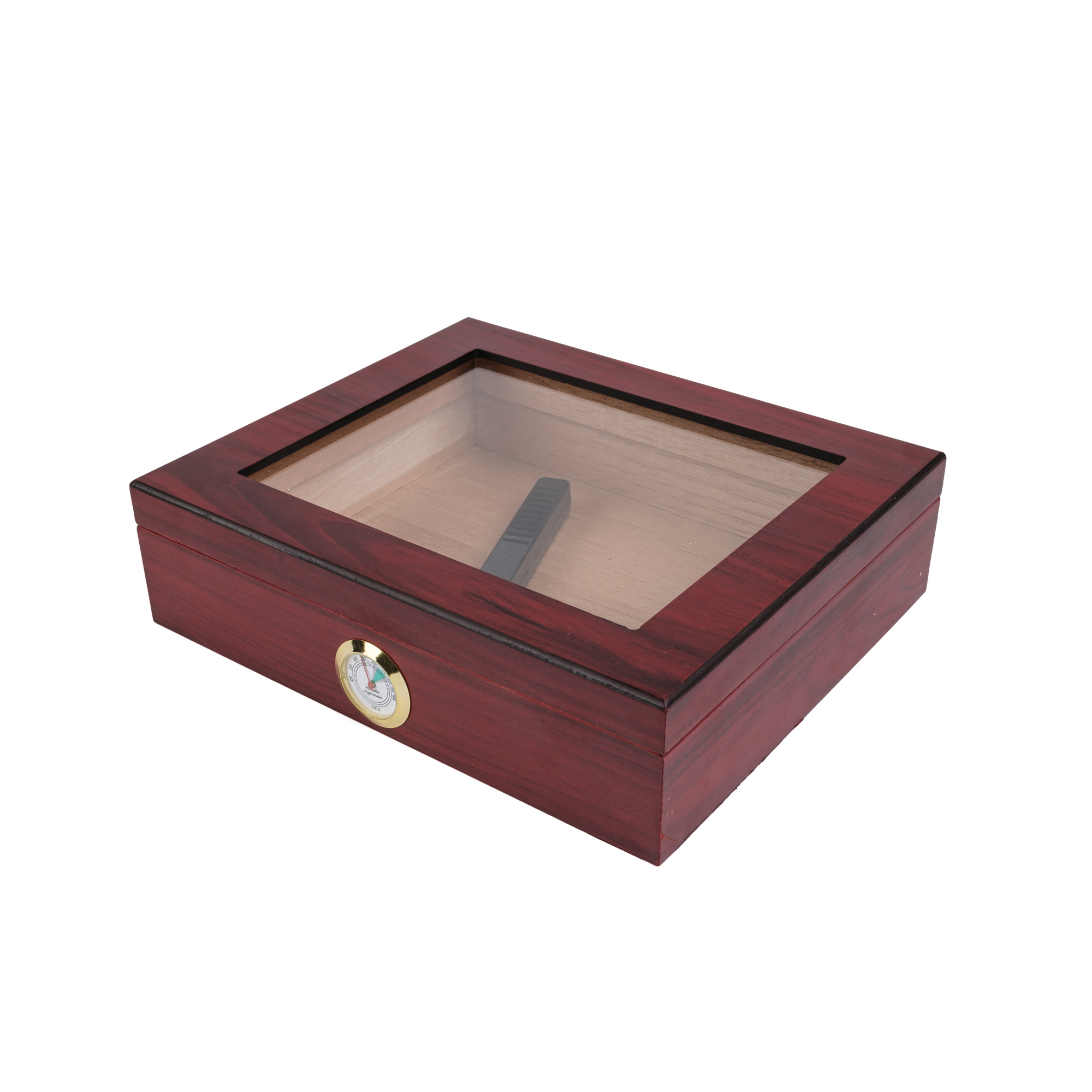 Humidor na 25 cygar - czerwono-brązowy z analogowym higrometrem i nawilżaczem
