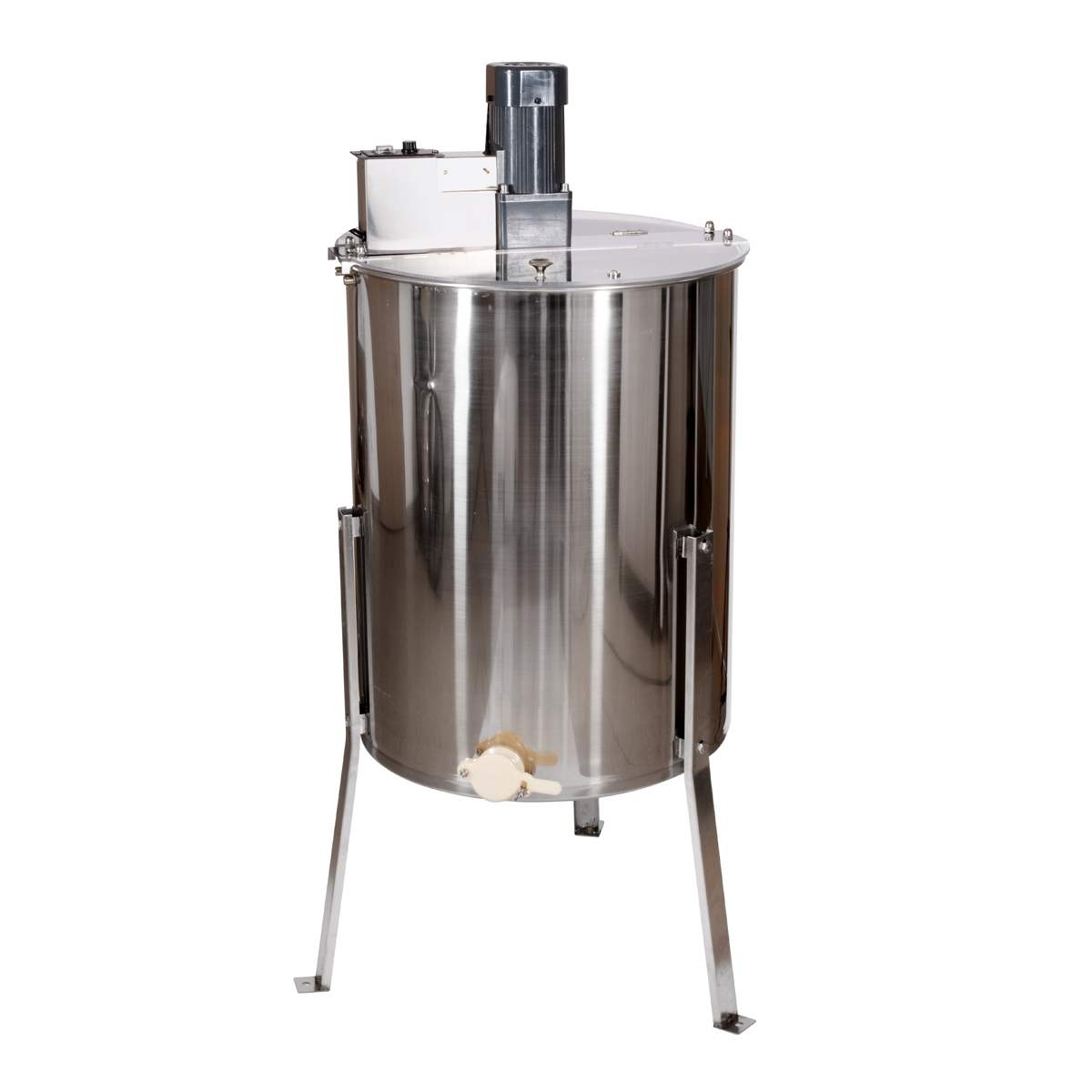 Czteroklatkowa nieodwracalna miodarka do ekstrakcji miodu z ramek z napędem elektrycznym.