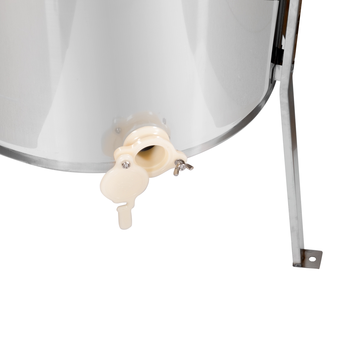 Miodarka o średnicy 470 mm wykonana jest z wysokiej jakości stali nierdzewnej o grubości 0,8 mm, dzięki czemu urządzenie jest solidne i stabilne podczas pracy.
