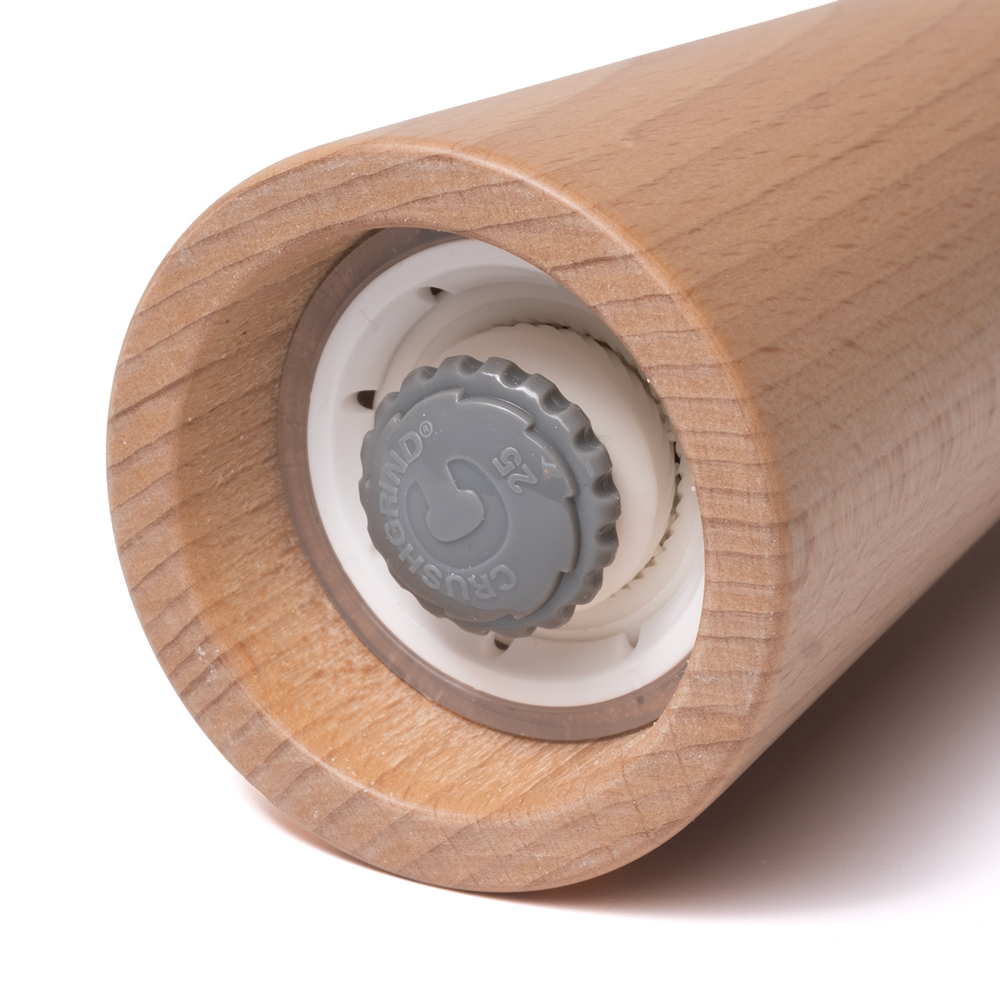 Młynek z litego drewna jest wyposażony w precyzyjny mechanizm mielący duńskiej marki CrushGrind. Powierzchnia młynka pokryta jest powłoką olejową, która chroni drewno i uwydatnia jego usłojenie. Grubość mielenia można oczywiście regulować.