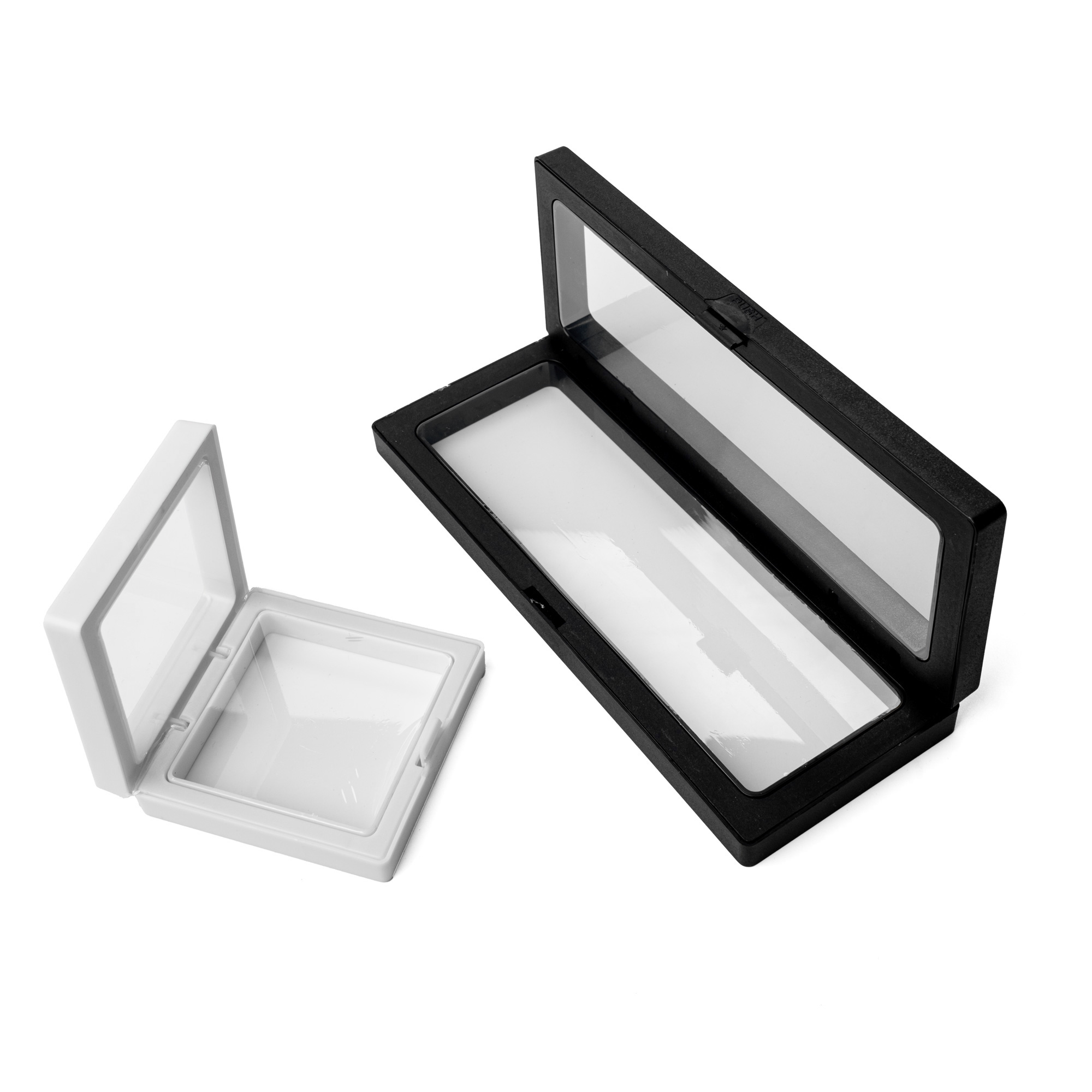 Plastikowa ramka jest odchylana i składa się z dwóch solidnych połówek - do każdej z nich przymocowana jest elastyczna, przezroczysta silikonowa membrana. Po otwarciu, należy umieścić przedmiot wewnątrz i zamknąć ramkę. Membrany łączą się ze sobą, delikatnie obejmując przedmiot i utrzymując go na miejscu. Ze względu na ich wyjątkową elastyczność, mogą rozciągać się do około 2-3 centymetrów, dzięki czemu mogą z łatwością pomieścić wyższe lub większe przedmioty. Efekt "lewitacji" i pełna widoczność ze wszystkich stron są nadal zachowane.