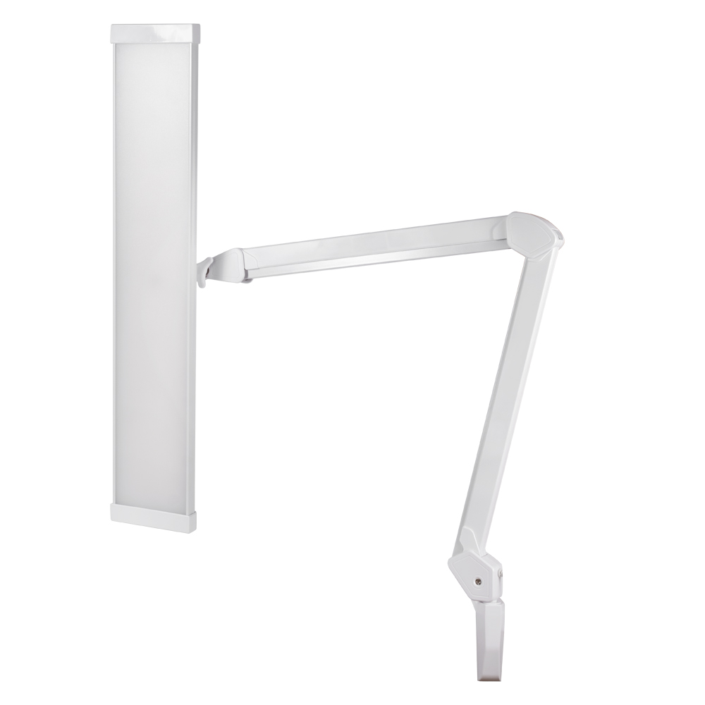 mocna lampa serwisowa 3500lm z dotykowym sterowaniem i możliwością zmiany temperatury barwowej 3000-6000K w kolorze białym z regulowanym ramieniem i dużą prostokątną głowicą z 540 diodami LED pokrytymi mlecznym dyfuzorem emitującym miękkie i równomiernie rozproszone światło, do jasnego oświetlenia obszaru roboczego w warsztacie, centrum serwisowym, szkołach lub w domu na stole warsztatowym majsterkowicza lub modelarza.