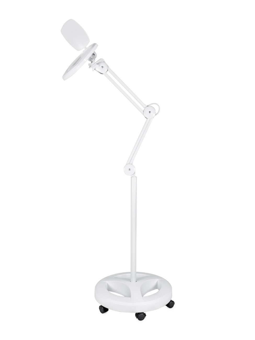 Okrągła podstawa o średnicy 46 cm zapewnia doskonałą stabilność lampy umieszczonej na stojaku. Dzięki sześciu kółkom całą lampę z podstawą można wygodnie przesuwać w zależności od potrzeb, a jedno z kółek ma hamulec, który umożliwia zablokowanie całej podstawy przed niezamierzonym ruchem. Dzięki tej podstawie możesz rozszerzyć zastosowanie swojej lampy z lupą bez konieczności kupowania nowej lampy. Będzie ona po prostu do Twojej dyspozycji, gdziekolwiek się z nią udasz. Lampy z podstawami są często używane w salonach medycznych, kosmetycznych i tatuażu lub w centrach serwisowych elektroniki niskonapięciowej i niskoprądowej.