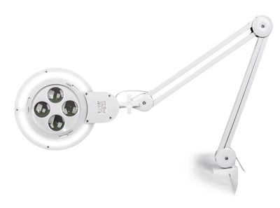 Wysokiej jakości i solidna lampa serwisowa z lupą IB-150 z ekonomicznym oświetleniem LED z dużą okrągłą lupą o średnicy użytkowej 150 mm z mocą optyczną 5 dioptrii i całkowitym powiększeniem 2,25x.
