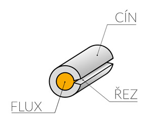 Przecinając drut cynowy, topnik w rdzeniu rurki jest dostępny, co przyczynia się do płynniejszego topienia stopu na złączu lutowniczym w niektórych zastosowaniach (szczególnie w zastosowaniach wysokotemperaturowych, gdzie odparowany topnik z rdzenia może powodować skwierczenie).