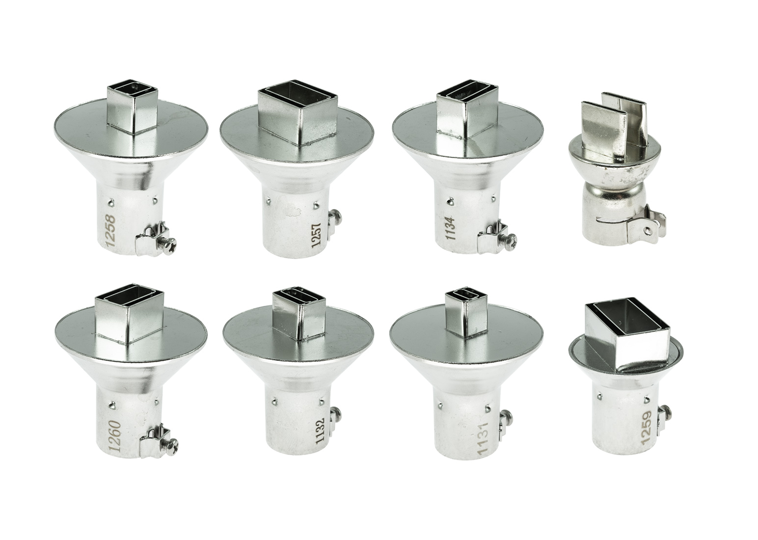 Ten zestaw 8 dysz SOP pozwala na pracę ze wszystkimi rozmiarami obwodów, które są powszechnie używane, zwłaszcza w telefonach komórkowych, komputerach, przemysłowych modułach sterowania lub kartach peryferyjnych. Oczywiście można ich używać do wszystkich wariantów obudów SOP, takich jak: PSOP, TSOP, SSOP, TSSOP.... Wymiary wylotów dysz są opisane w tabeli i mieszczą się w zakresie od 4,1 x 10 mm do 13 x 28 mm. Każda z dysz może być zamówiona oddzielnie, w takim przypadku należy wybrać z poniższej tabeli.