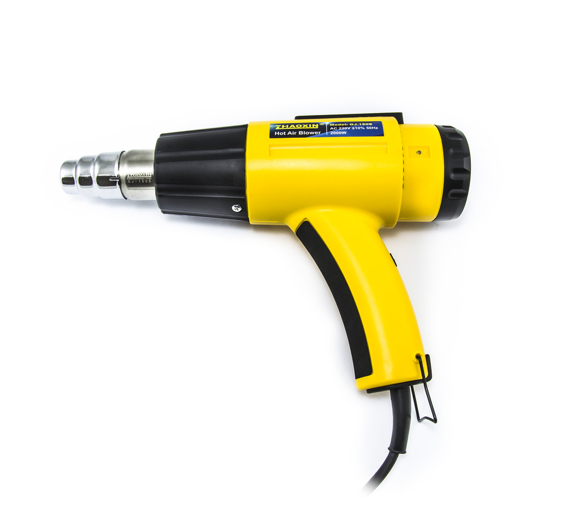 Wydajny ręczny pistolet na gorące powietrze Zhaoxin GJ-150S o mocy 2 kW z precyzyjną kontrolą temperatury gorącego powietrza 100 - 600°C i trzystopniową regulacją przepływu powietrza 210 - 380 l/min kontynuacja tekstu