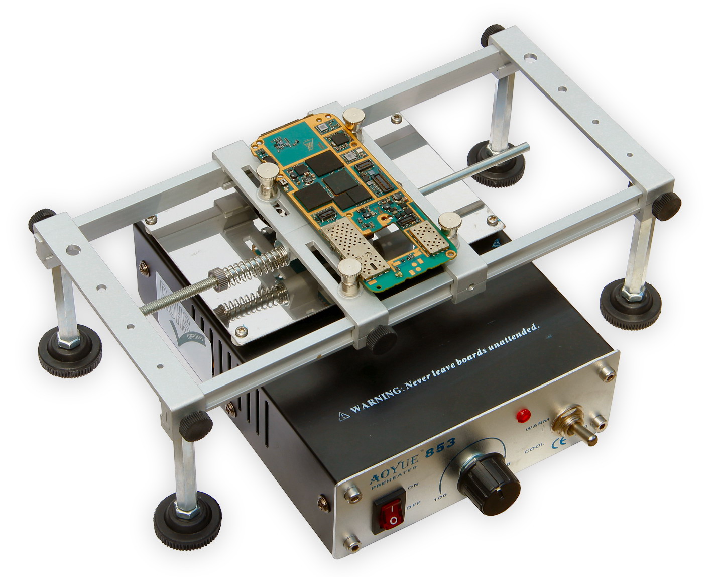 Stół warsztatowy nadaje się do montażu płytek PCB podczas pracy z mikroskopem, gorącym powietrzem, podgrzewaniem, lutowaniem na podczerwień, rozlutowywaniem itp.