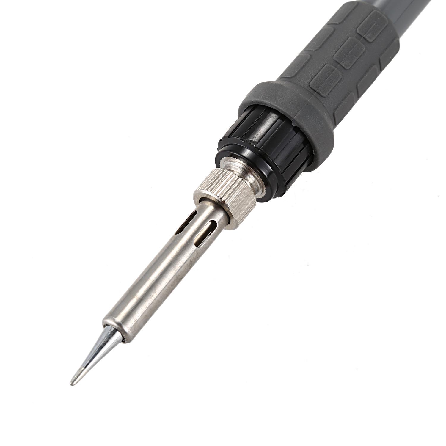 Bogate akcesoria obejmują 5 wymiennych końcówek o różnych kształtach - patrz zdjęcie, miedzianą gąbkę w metalowym pudełku do czyszczenia końcówek, metalowy stojak na pióro lutownicze, rurową puszkę, wysokiej jakości zakrzywioną szpiczastą pincetę SMD i poręczny aluminiowy śrubokręt z 8 końcówkami - 4 krzyżowymi i 4 płaskimi. Magnes neodymowy przytrzymuje bity. Całość zapakowana jest w poręczną plastikową walizkę.
