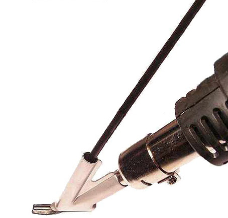 Drut spawalniczy do tworzyw sztucznych wykonany z HDPE - polietylenu okrągłego o średnicy 2,65 mm do spawania tworzyw sztucznych PE za pomocą gorącego powietrza i specjalnej przystawki do pistoletów na gorące powietrze, która topi drut spawalniczy wraz z łączonym materiałem i powoli ciągnie za tworzywo sztuczne, aby uszczelnić połączenie, które jest klejone po utwardzeniu.