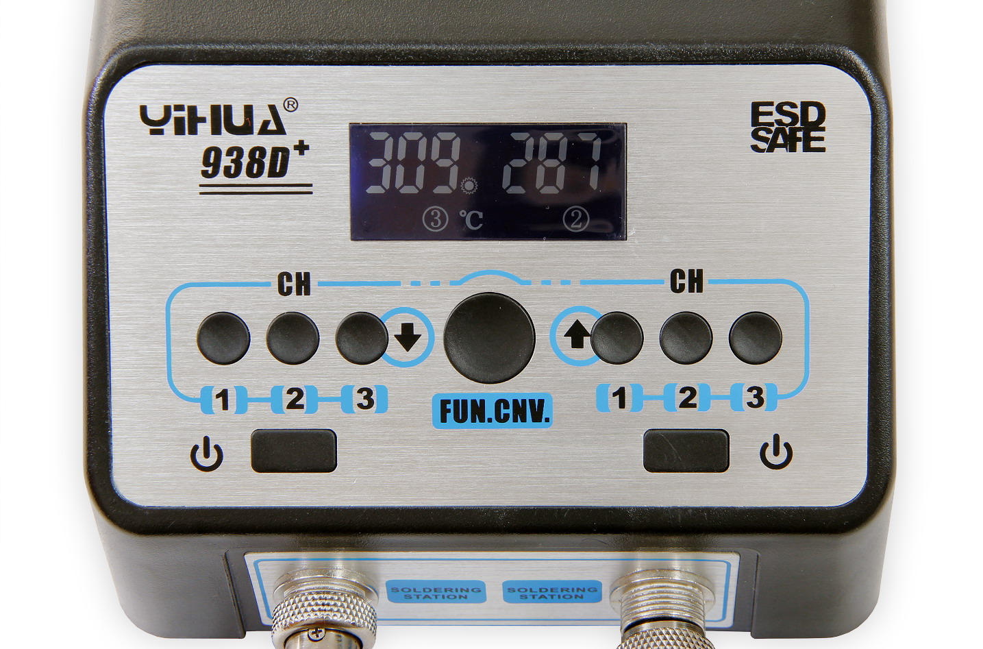 W takiej konfiguracji grot lutowniczy do grubej końcówki musi zapewniać wyższą wydajność, ponieważ podczas lutowania grubą końcówką spodziewane jest zwiększone rozpraszanie ciepła. Pióro lutownicze typu 907N z japońską wkładką grzewczą zapewnia wysoką wydajność w szerokim zakresie zastosowań lutowniczych. Z drugiej strony, w przypadku grotów 907L wysoka wydajność spirali grzewczej jest zbędna, dlatego każdy kanał lutowniczy jest wyposażony w inny typ grotu. Podczas projektowania urządzenia dołożono wszelkich starań, aby zmaksymalizować jego właściwości antystatyczne i przydatność do lutowania elementów wrażliwych na ładunki elektrostatyczne.