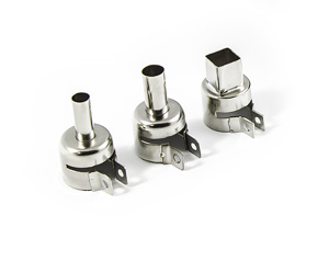W zestawie znajdują się trzy wymienne dysze, dwie okrągłe o średnicy 8 mm i 10 mm oraz jedna kwadratowa 12x12 mm.