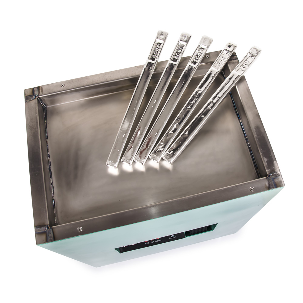 Cyfrowo sterowana wanna do cynowania o średnicy 50 mm z wyświetlaczem bieżącej temperatury. Korpus wanny wykonany jest ze stopu tytanu, dzięki czemu jest bardziej odporny na erozję przy długotrwałym użytkowaniu; są one znacznie trwalsze niż wanny ze stali nierdzewnej stosowane w produktach "Tin Bath 36mm - 100mm". Ponadto, stop tytanu, z którego wykonane są wanny, pozwala na znacznie wyższe temperatury pracy niż w przypadku wanien ze stali nierdzewnej, do 600°C w porównaniu do maksymalnie 480°C w przypadku stali nierdzewnej.