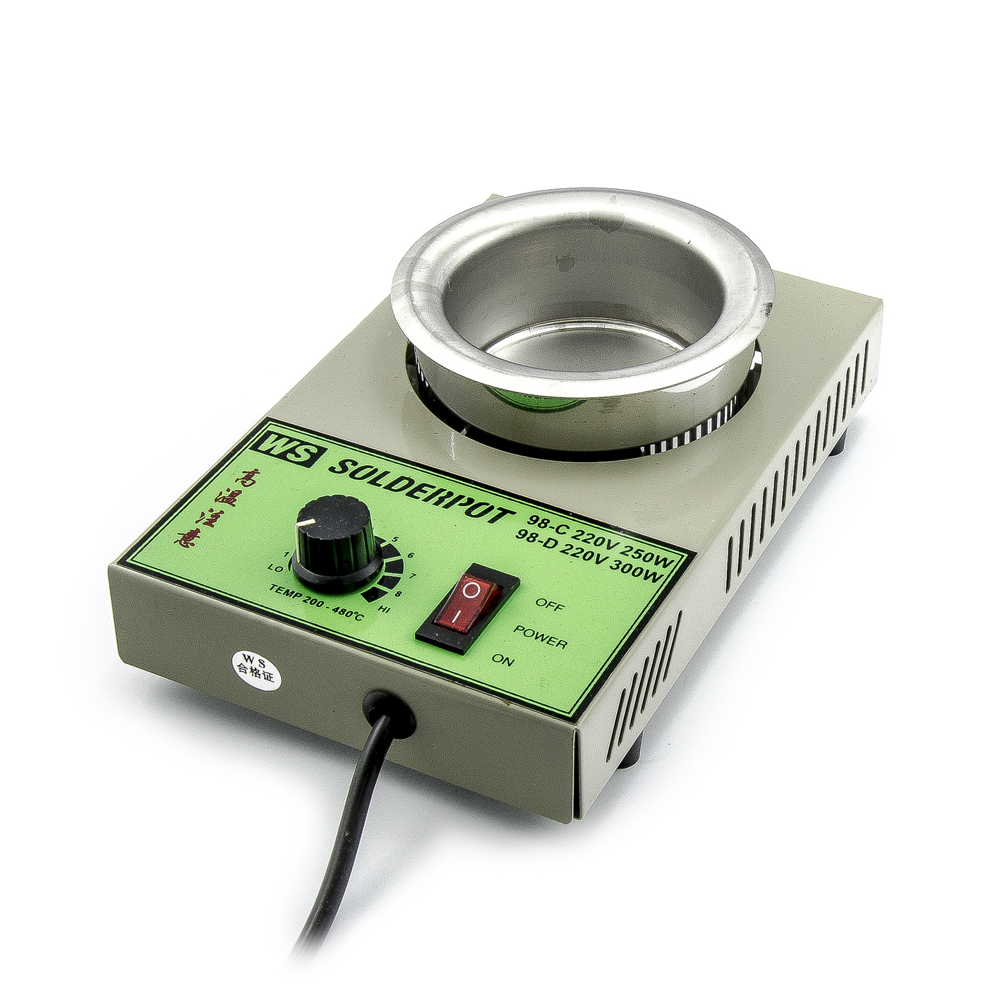 Wanna do cynowania do topienia stopu lutowniczego 800g. Wanna ze stali nierdzewnej o średnicy 80 mm jest ogrzewana elektrycznie za pomocą cewki grzewczej o mocy 250 W. Powierzchnia wanny jest odporna na erozję powierzchniową w stopionej mieszaninie cyny i oprócz długiej żywotności nie pogarsza właściwości stopu lutowniczego; wanna może być również używana z ładunkiem bezołowiowym, ale żywotność będzie niższa i należy zachować ostrożność, aby sprawdzić integralność strukturalną jej korpusu po dłuższym użytkowaniu.