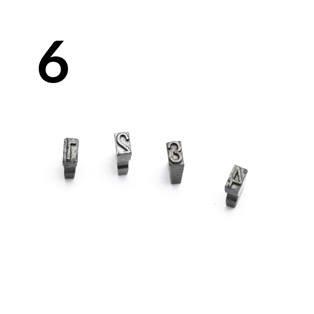 Stalowy znak z rowkami do mocowania do głowicy drukującej zgrzewarki ciągłej służy do wytłaczania datowników, tekstów i partii produkcyjnych na opakowaniach. Dodatkowe znaki można zakupić jako zamienniki w przypadku utraty znaku z zestawu lub jako znaki rozszerzające, jeśli liczba znaków w zestawie podstawowym jest niewystarczająca do wytłaczania tekstów, datowników lub numerów partii.