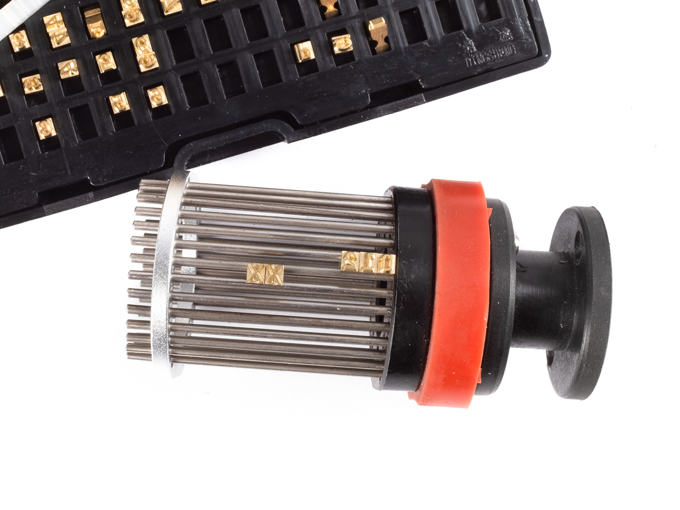 Koło barwiące z białym tuszem do poziomej maszyny pakującej KT-250X i drukarki przemysłowej AT1100A . Kółko z tuszem stałym służy jako nośnik druku. Wydajność jednego wałka wynosi około 2500 wydruków, po czym należy go wymienić na nowy. Atrament stały nie ulega degradacji na skutek starzenia i może być przechowywany przez wiele lat bez wysychania. Tusz jest odporny na ścieranie i wodę oraz powszechnie stosowane środki czyszczące, wydrukowany obiekt można czyścić rozpuszczając woskową bazę tuszu - np. benzyną, acetonem.