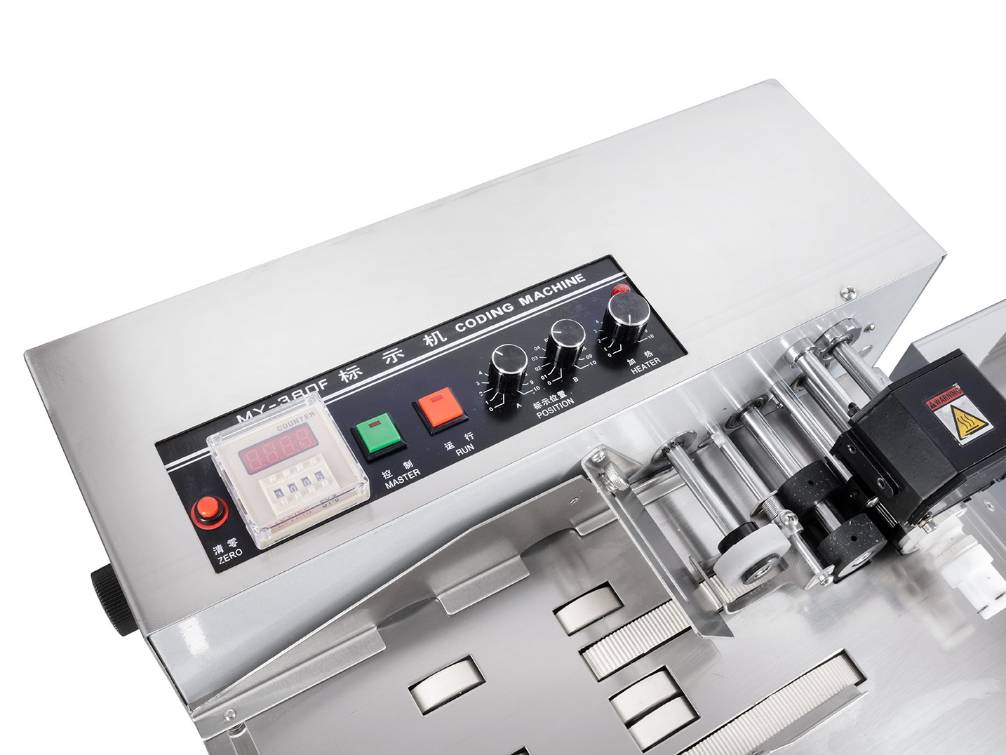 Automatyczna drukarka biurkowa MY-380F/W do masowego drukowania pustych torebek, woreczków i opakowań przy użyciu gorącego tuszu.