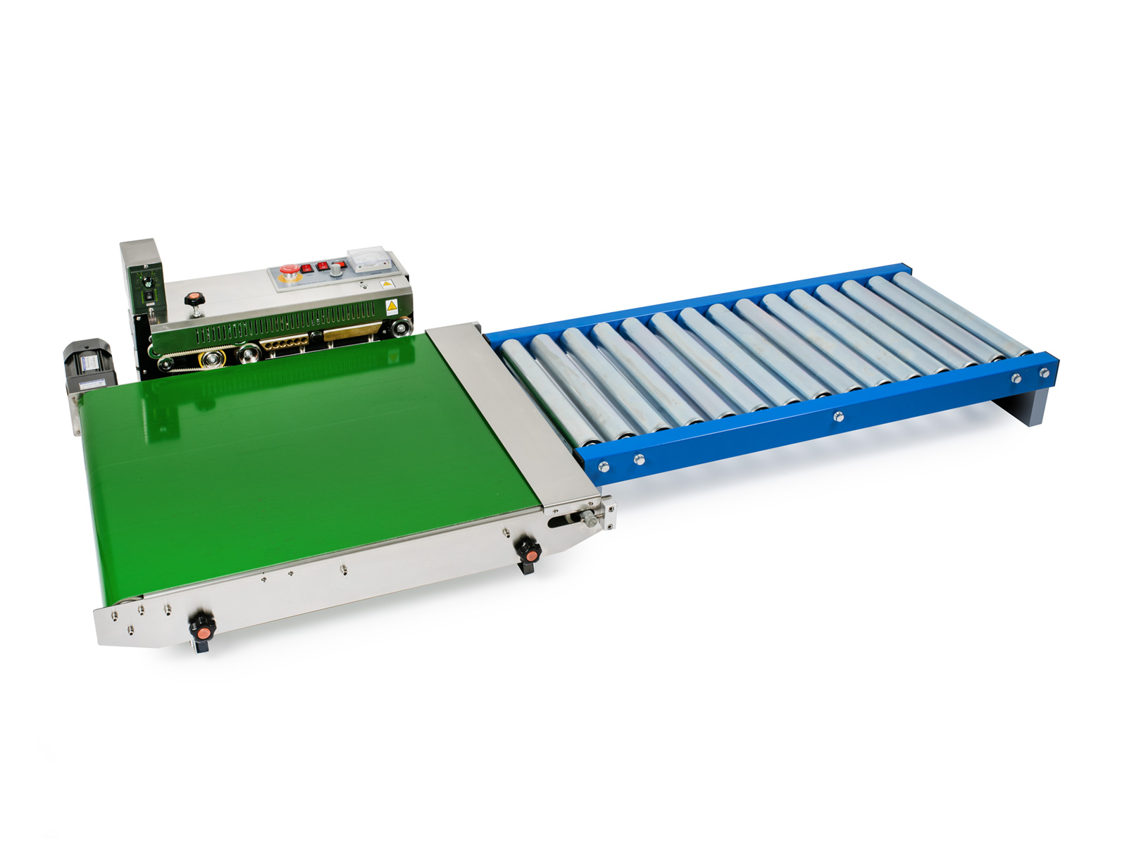 Do zgrzewarki taśmowej można dodać przenośnik rolkowy, aby usprawnić i przyspieszyć obsługę dużych opakowań podczas zgrzewania. Cały system tworzy wówczas niezawodny i szybki sposób zgrzewania i pakowania małych i dużych worków i opakowań. System przenośnika taśmowego musi być zamontowany na własnej konstrukcji lub stole, aby porównać wysokość taśmy zgrzewarki i przenośnika rolkowego. Przenośnik rolkowy może być przymocowany zarówno przed, jak i za pakowarką DBF-770, która może następnie stać się ogniwem pakującym w linii produkcyjnej i pakującej.