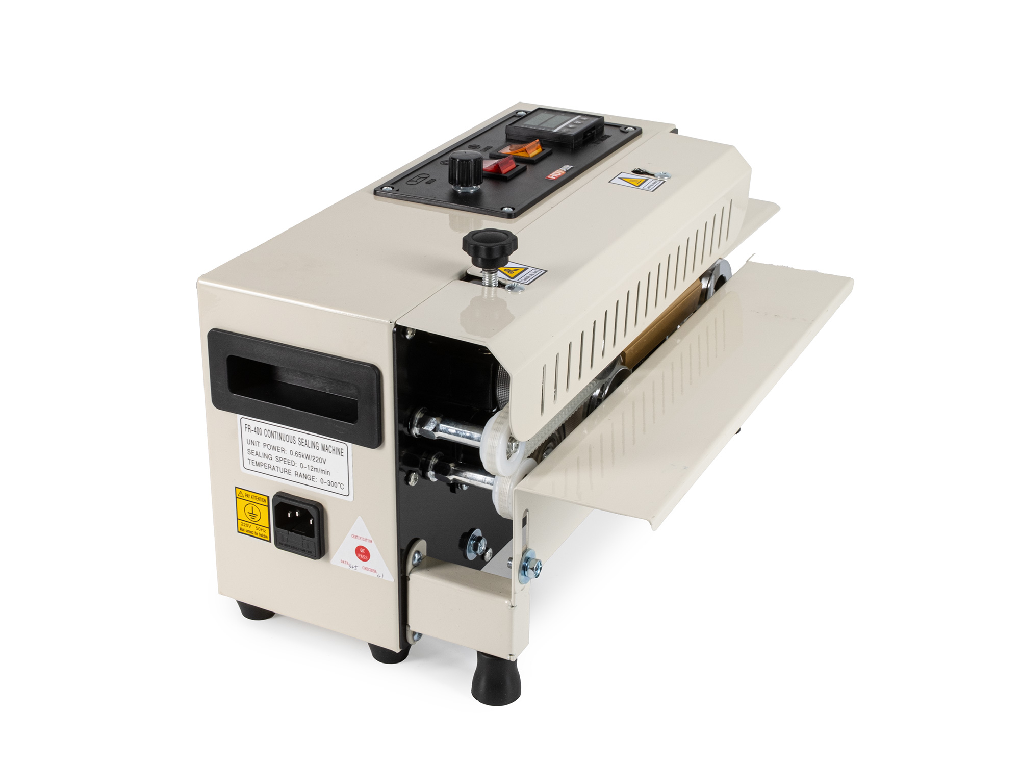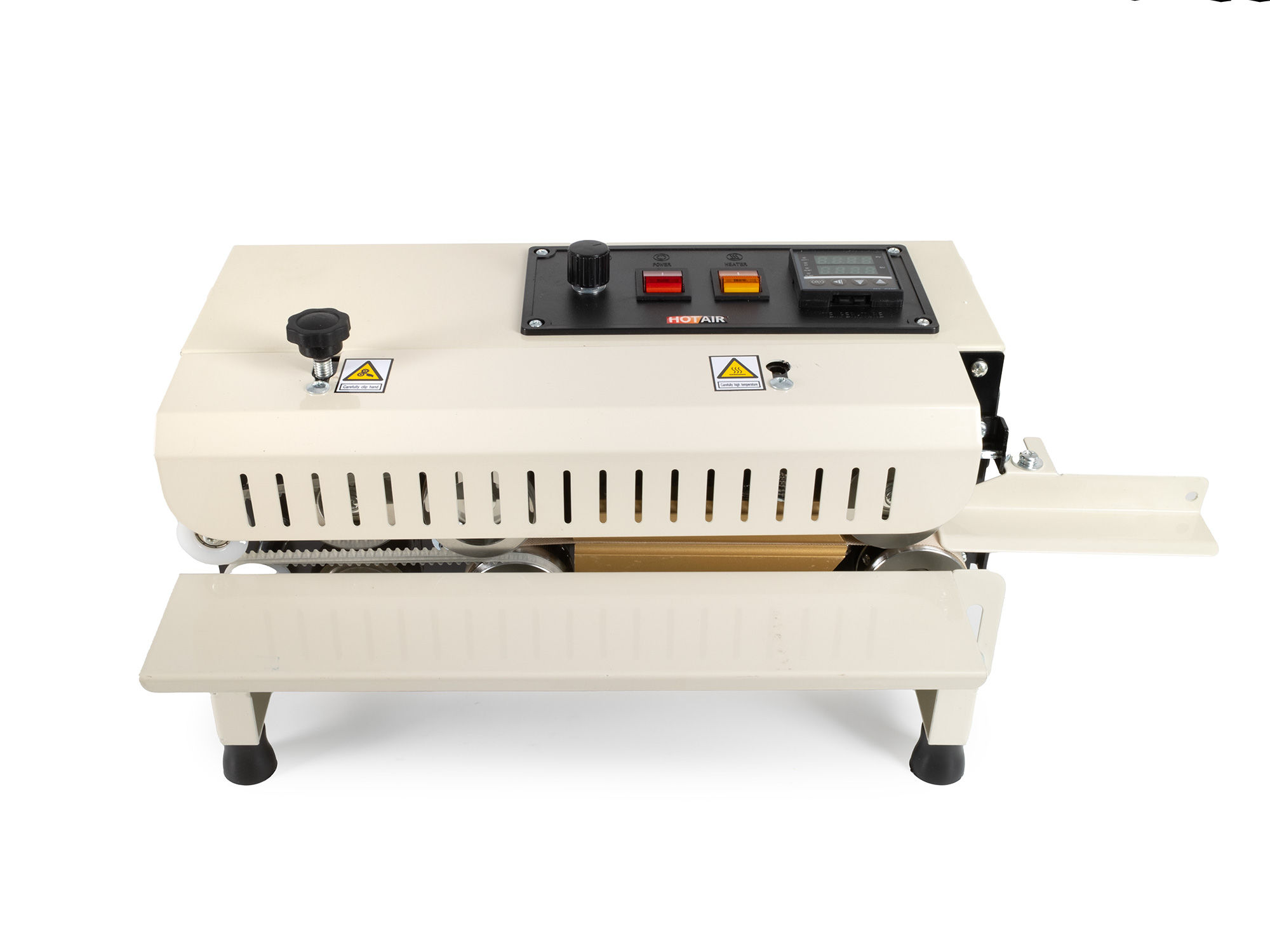 Zakres temperatur urządzenia wynosi od 0 do 300 °C. Aby uzyskać optymalne wyniki, temperatura powinna być dostosowana do prędkości podawania i rodzaju opakowania.