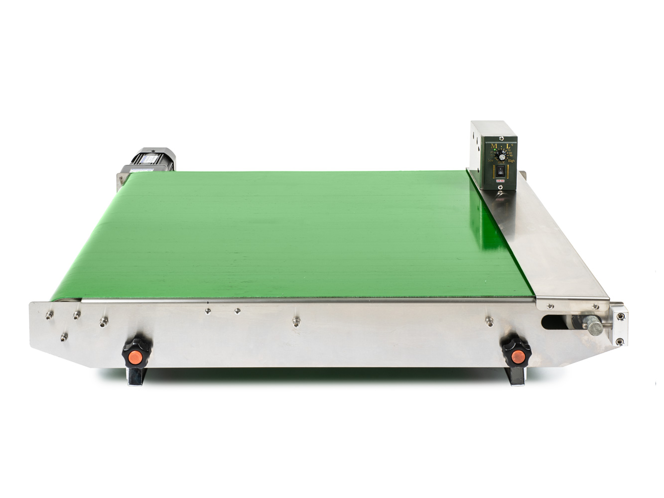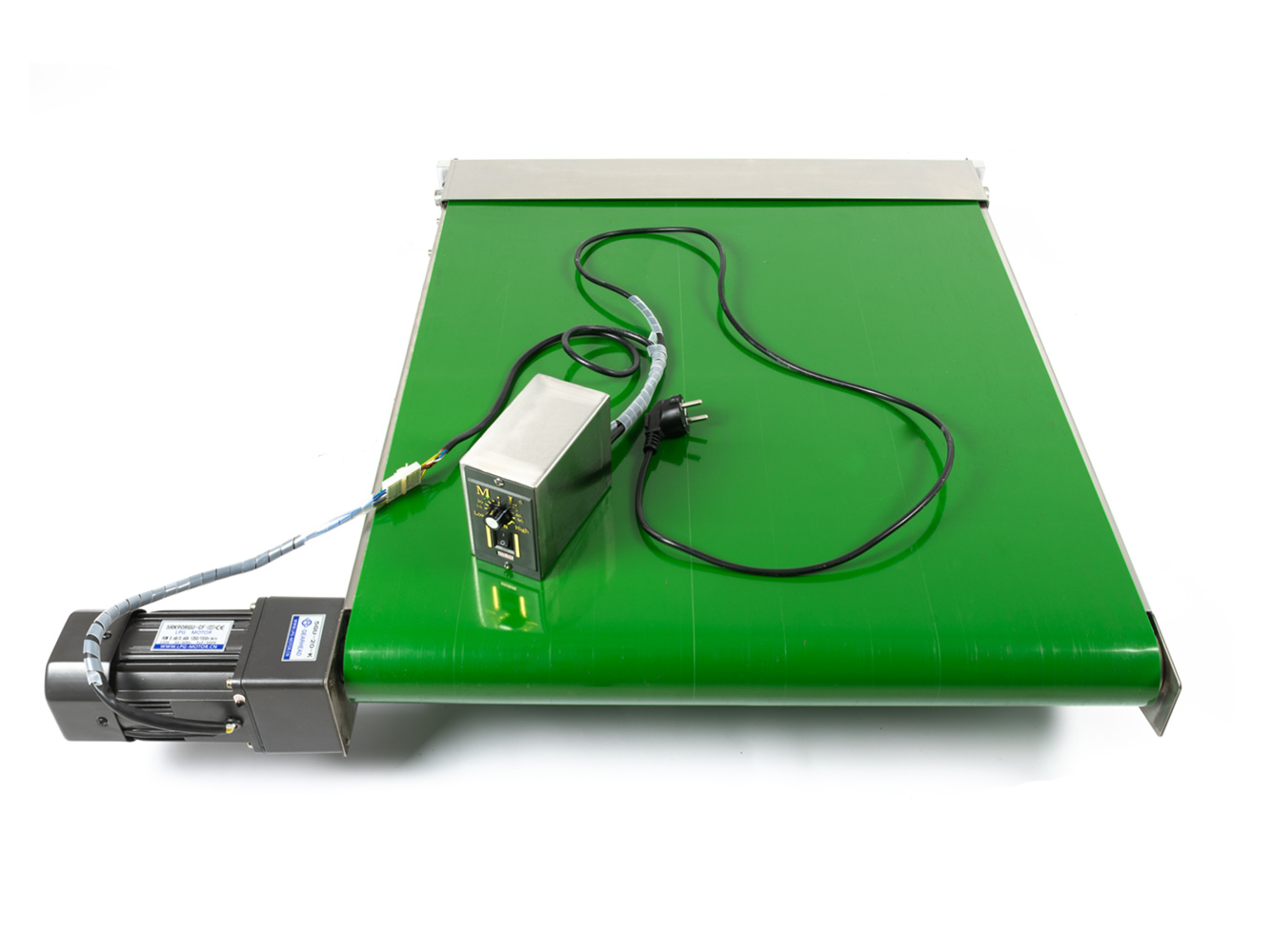 Spawarka do pracy ciągłej wyposażona jest w przenośnik z gumową taśmą o szerokości 110 mm i aktywnej długości 78 cm.