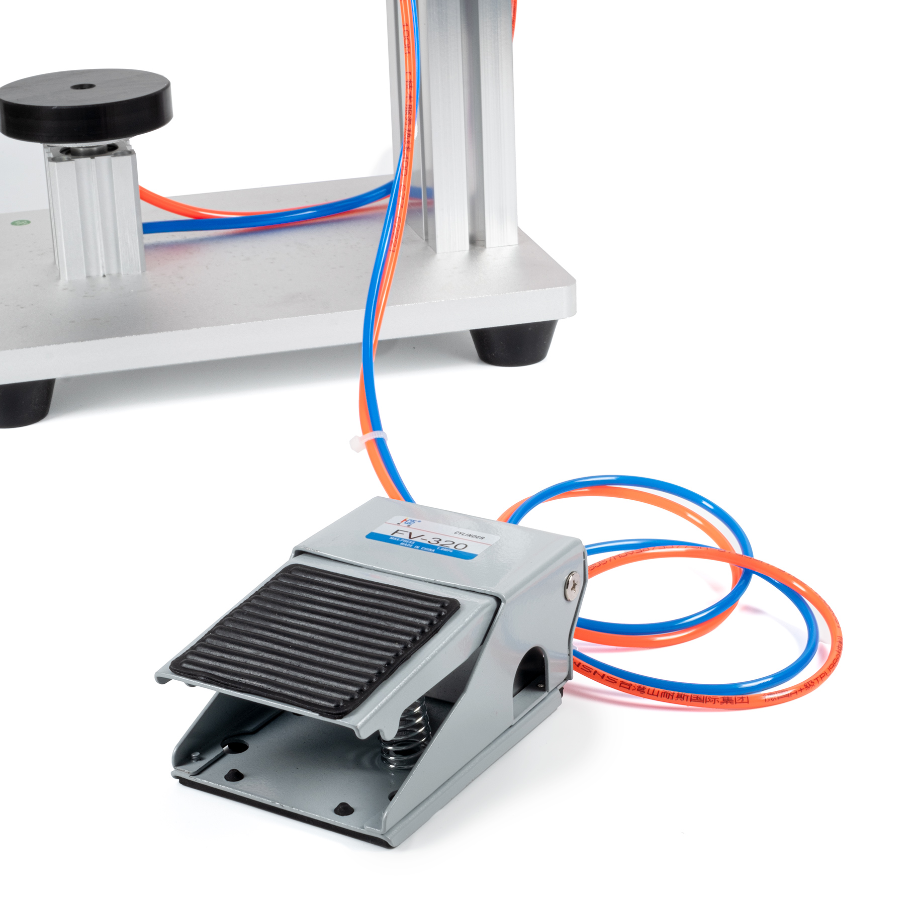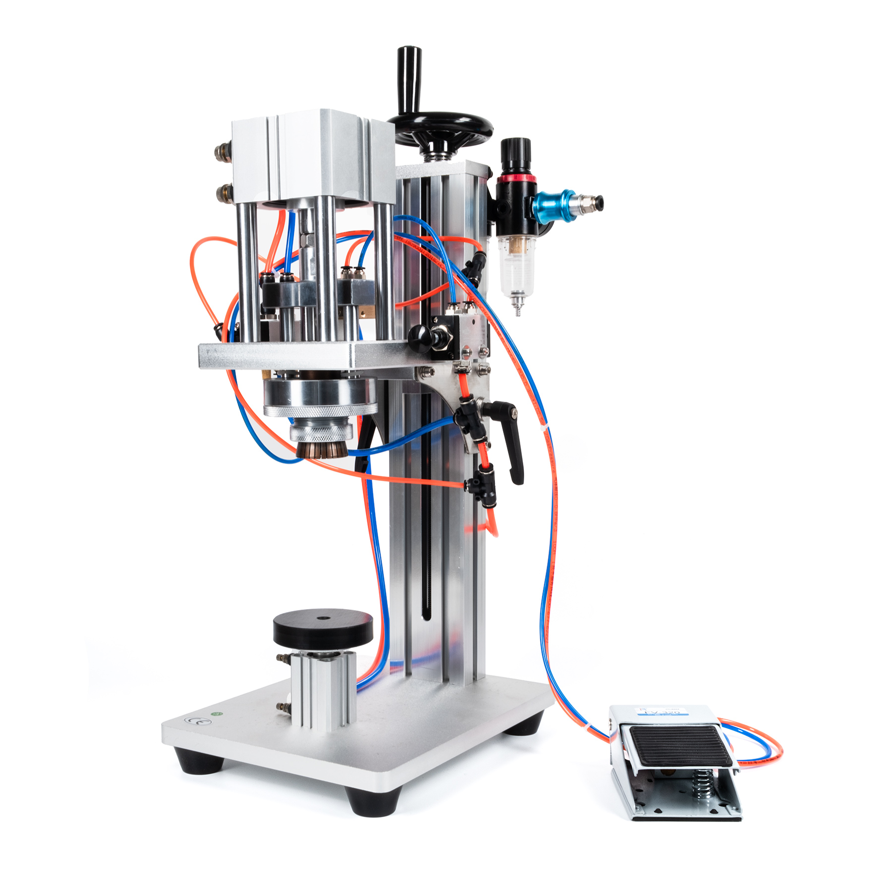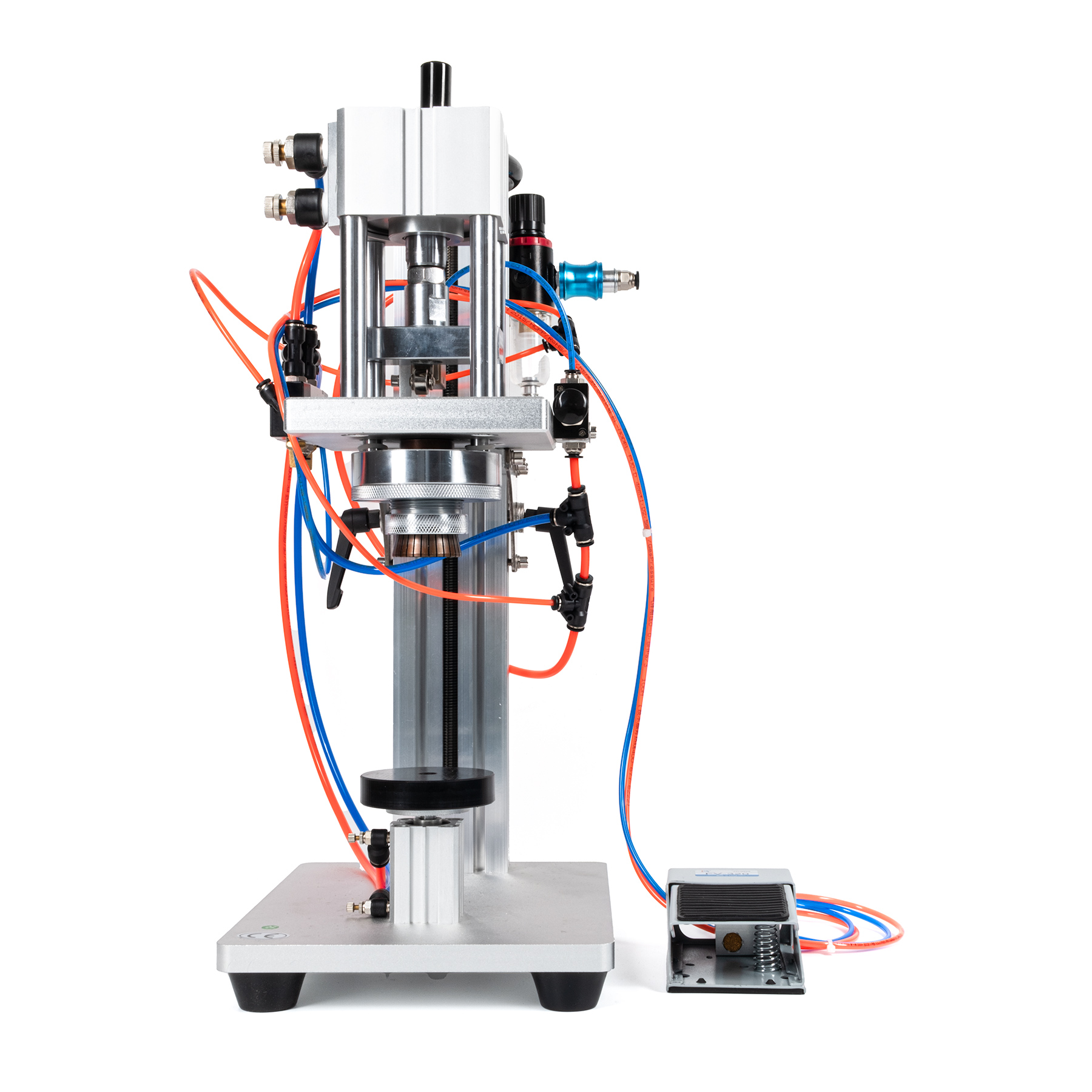 Proces prasowania jest uruchamiany za pomocą pedału nożnego, który po naciśnięciu zaciska butelkę w prasie, a następnie dociska dopasowany kapsel do butelki. Cały proces trwa około 2 sekund.