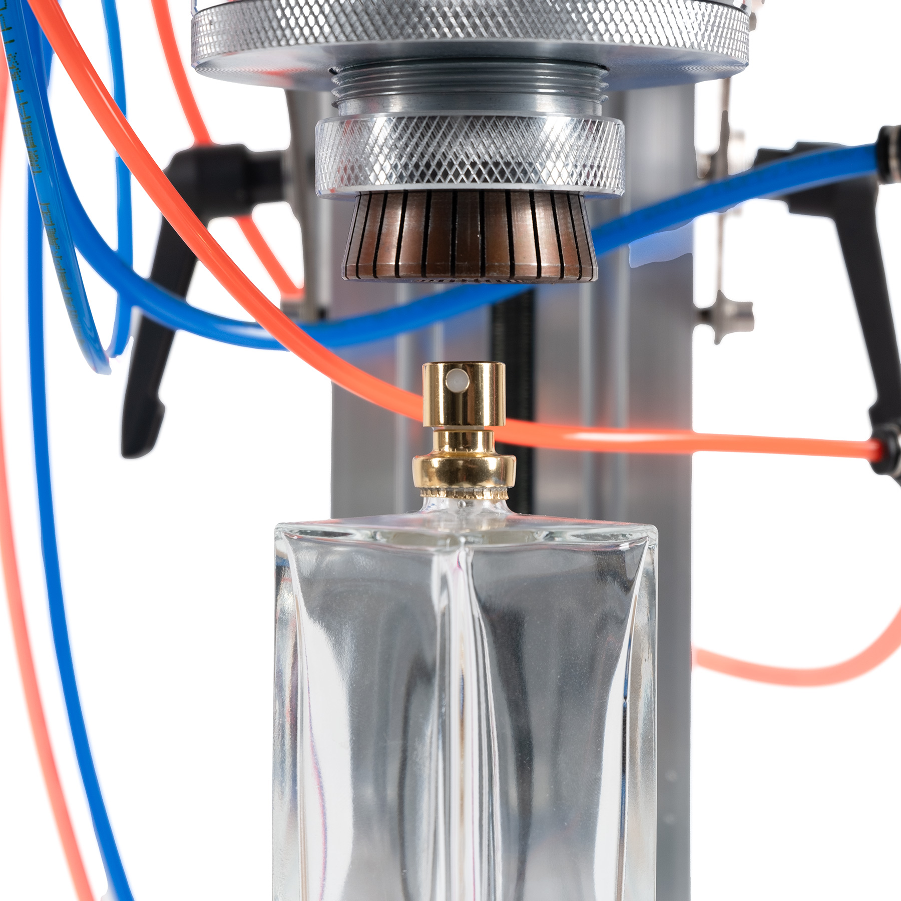 Całkowicie metalowa prasa jest standardowo dostarczana do butelek o średnicy szyjki 15 mm (FEA 15), ale głowica prasy jest łatwo wymienna, a w razie potrzeby można również dostarczyć głowice prasy w zakresie 13-20 mm. Oznaczenie FEA to rodzaj zakrętek i butelek do perfum i substancji zapachowych. Wysokość zakrętki jest ograniczona wewnętrzną wysokością głowicy 35 mm. Średnica nasadki jest określona przez rozmiar głowicy tłoczącej 15 mm. Szklana butelka może mieć dowolny kształt i średnicę o maksymalnej wysokości 220 mm.