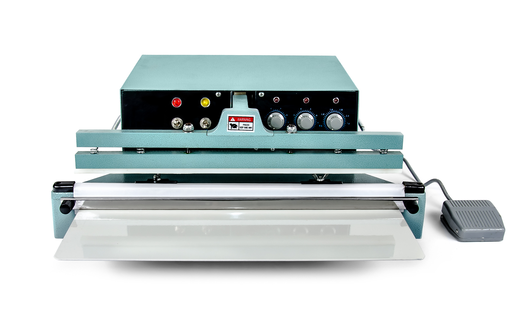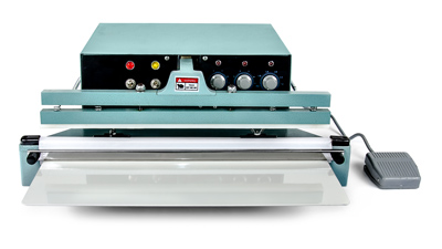 Ta zgrzewarka impulsowa oferuje fizycznie znacznie łatwiejszą obsługę, bardziej zaawansowane elementy sterujące i bardzo solidną, całkowicie metalową konstrukcję w porównaniu do konwencjonalnych zgrzewarek dźwigniowych. Górna szczęka nie jest w formie ręcznej dźwigni, która musi być ręcznie dociskana do worka, ale w pełni automatycznej szczęki, która jest kontrolowana przez potężny elektromagnes, który po uruchomieniu pedałem nożnym mocno dociska ją do topliwego drutu spawalniczego i rozpoczyna cykl zgrzewania. Brak wpływu człowieka na długość impulsu sprawia, że wszystkie spoiny wyglądają identycznie - profesjonalnie.