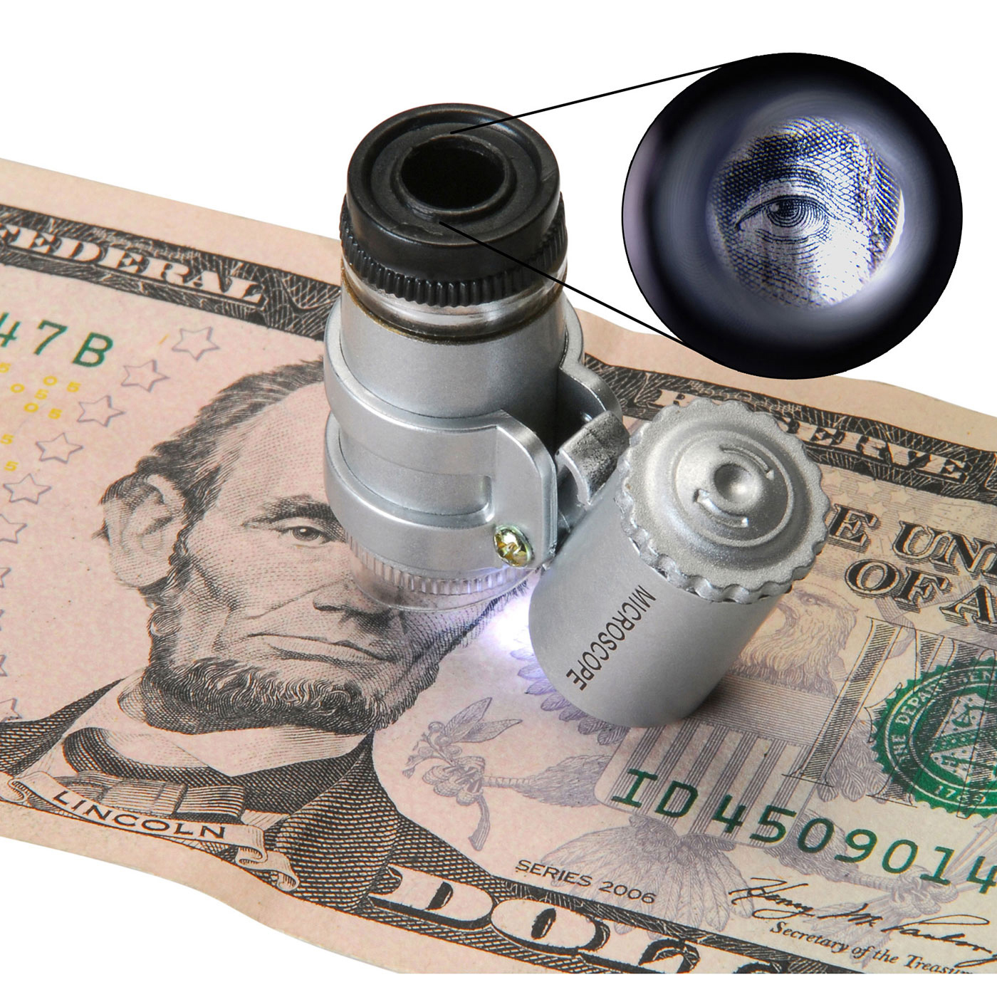 Mikroskop o wielkości około 3,5 cm z bateryjnym oświetleniem LED jest dostępny w dwóch wersjach, różniących się powiększeniem - 45x i 60x. Jest to kontaktowy system optyczny, dlatego musi być umieszczony bezpośrednio na obserwowanej powierzchni. Zazwyczaj takie mikroskopy są używane do badania banknotów i monet, ale są również bardzo odpowiednie np. do wykrywania defektów na płytkach drukowanych telefonów komórkowych.