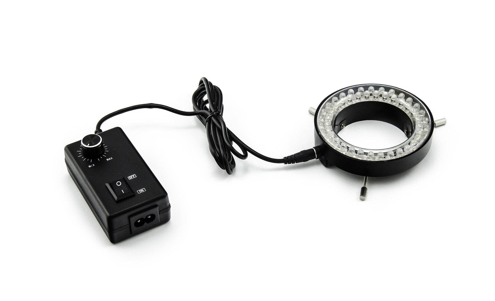 lampa LED z regulacją intensywności oświetlenia obszaru roboczego, którą mocuje się do głównego obiektywu mikroskopu. W zestawie znajduje się również futerał chroniący mikroskop przed kurzem i innymi zabrudzeniami.