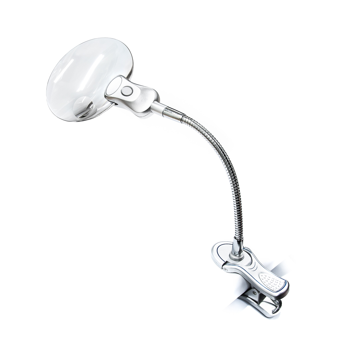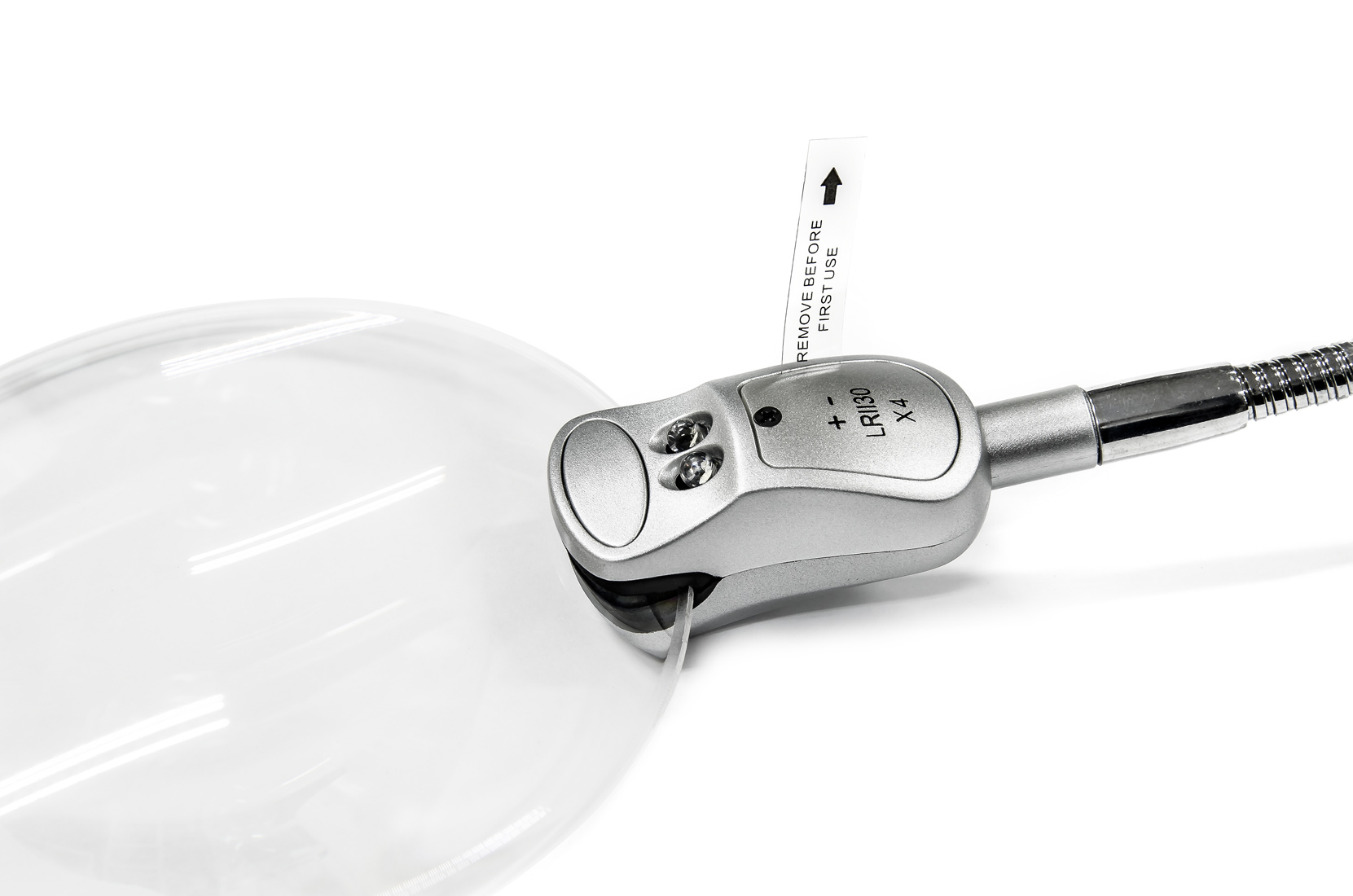 Uchwyty na lupy znajdują się na elastycznych podstawkach. Po wygięciu do wymaganego kształtu będą one niezawodnie utrzymywać się w wymaganych pozycjach. Aby oświetlić pole widzenia, lupa jest wyposażona w parę białych diod LED zasilanych bateryjnie. Oświetlenie nie wymaga zasilania sieciowego 230V. Oświetlenie jest włączane za pomocą mikroprzełącznika na górze. W celu ochrony przed zarysowaniem soczewki, w zestawie znajduje się wiązany pokrowiec ochronny z tkaniny.