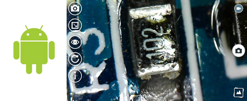 Mikroskop można również podłączyćdo telefonu z systemem Android i używać go w dowolnym miejscu w terenie bez potrzeby korzystania z komputera. Mikroskop będzie współpracował ze wszystkimi darmowymi aplikacjami do kamer USB dostępnymi w sklepie Google Play. Aby go podłączyć, należy zakupić przejściówkę z żeńskiego złącza USB-A na męskie USB-C do telefonu.