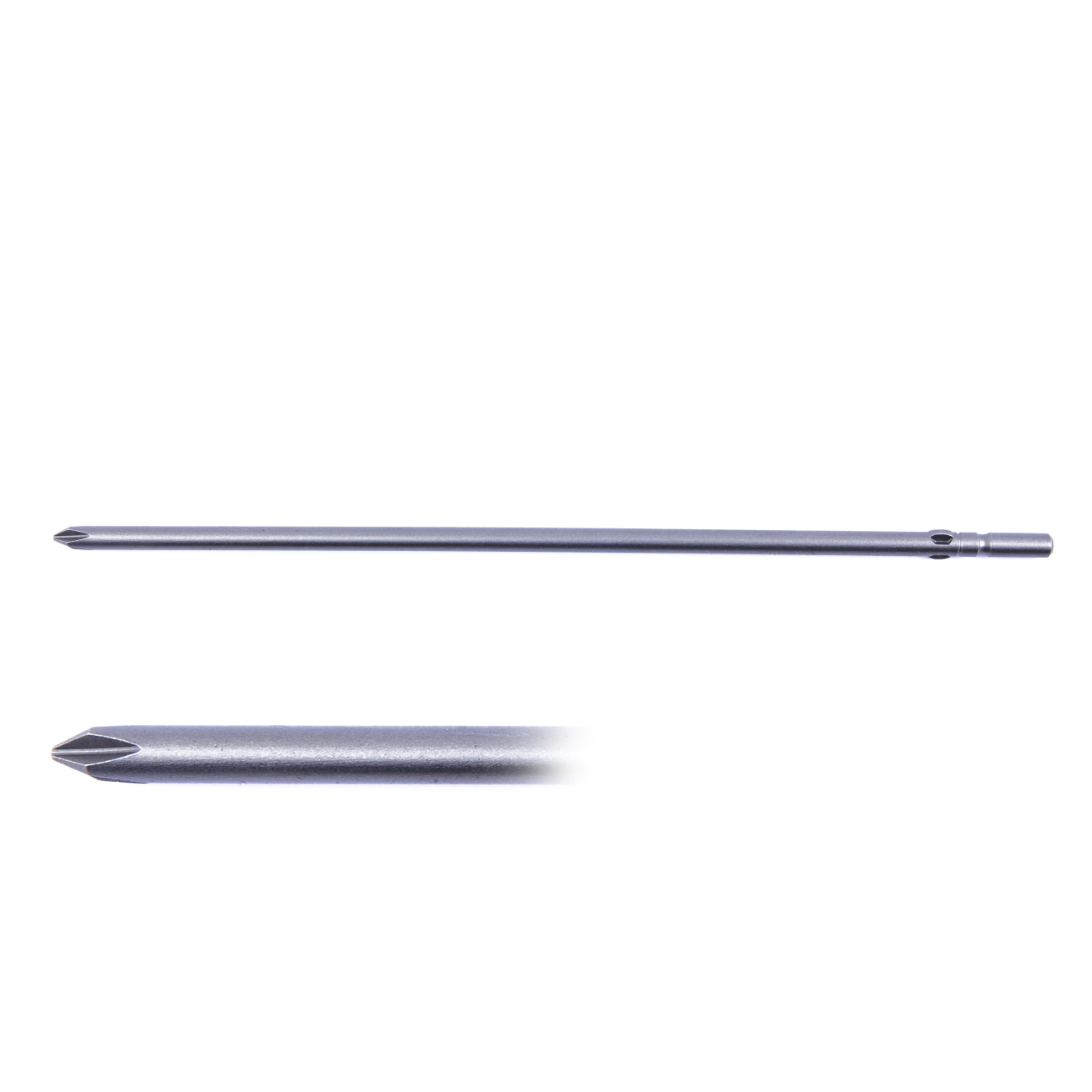 Końcówka krzyżowa H5(∅5) PH1 o długości całkowitej 200mm do wkrętarki elektrycznej TL008 H5, OS-600 H5 lub innych wkrętarek ręcznych lub elektrycznych z szybkozłączem z okrągłym łbem ∅5. Końcówka jest wykonana z wysokiej jakości hartowanego stopu stali S2, końcówka jest namagnesowana dla szybszej obsługi śrub.