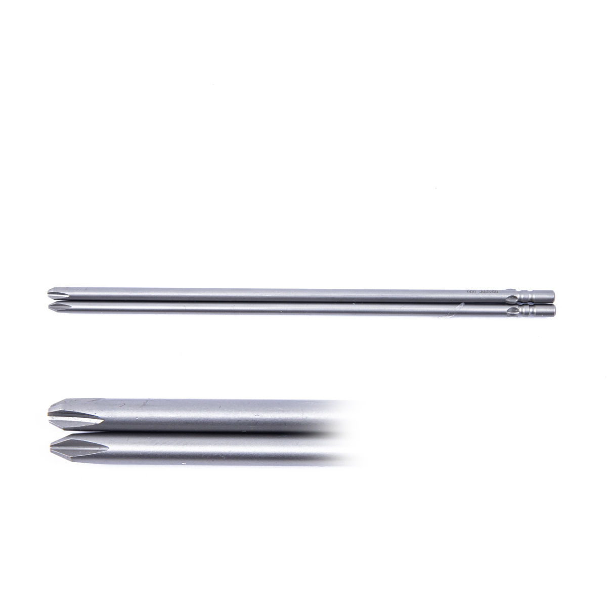 zestaw 2 końcówek krzyżakowych H4(∅4) PH1 i PH2 o łącznej długości 150mm do wkrętarki elektrycznej dynamometrycznej Nt-0802 H4 i wkrętarki ręcznej z końcówkami 24w1 Hios H4 lub innych wkrętarek ręcznych lub elektrycznych z szybkozłączem z łbem okrągłym ∅4. Końcówka jest wykonana z wysokiej jakości hartowanego stopu stali S2, dla szybszej obsługi śruby końcówka jest namagnesowana.