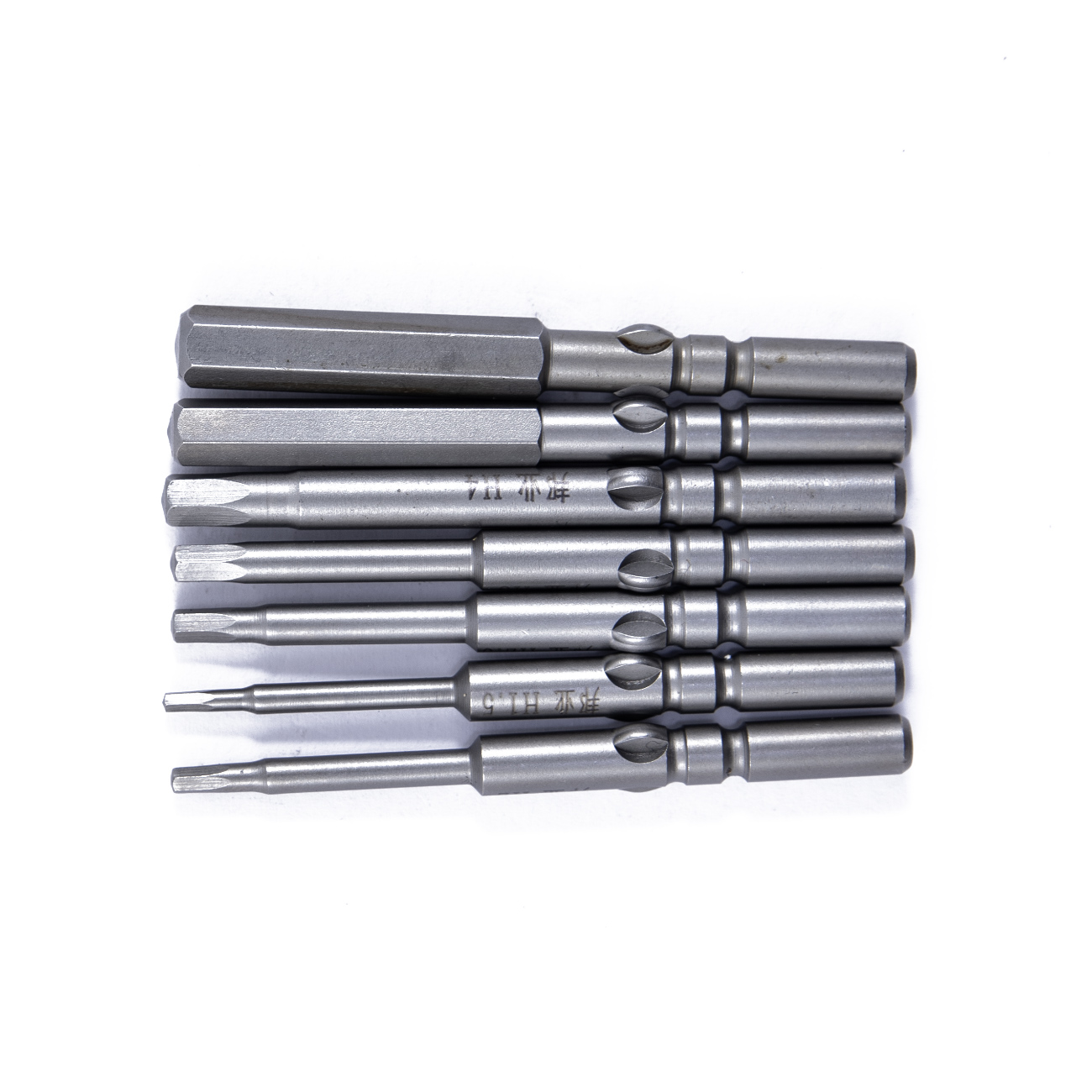 zestaw bitów 7szt H5(∅5) Imbus H1,5-H6 o łącznej długości 60mm do wkrętaków elektrycznych dynamometrycznych TL008 H5, OS-600 H5 lub innych wkrętaków ręcznych lub elektrycznych z łbem okrągłym szybkomocującym ∅5. Końcówka jest wykonana z wysokiej jakości hartowanego stopu stali S2, końcówka jest namagnesowana dla szybszej obsługi śrub.