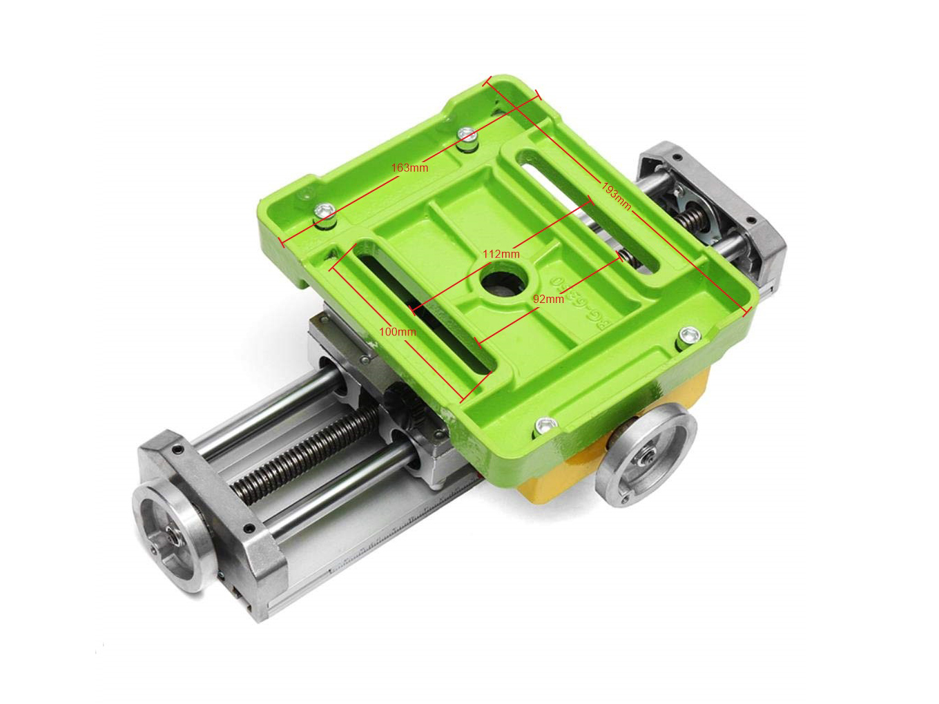 Podstawa stołu jest przystosowana do mocowania wiertarek stojakowych oraz stojaków do miniwiertarek i frezarek. Stół jest ruchomy w dwóch osiach X = 178mm, Y = 50mm. Ruch stołu w osiach X i Y odbywa się za pomocą kół regulacyjnych, jeden obrót koła odpowiada ruchowi o 3 mm. Koła są wyposażone w skalę dla dokładniejszego ruchu, 1 część skali koła = ruch o 0,15 mm. Stół wyposażony jest również w przesuwną linijkę do łatwej i dokładnej regulacji osi X. Na górnej powierzchni stołu znajdują się trzy rowki teowe do mocowania imadeł i zacisków. W zestawie ze stołem znajdują się stopniowane zaciski do mocowania obrabianych przedmiotów.